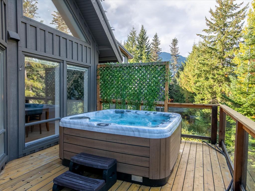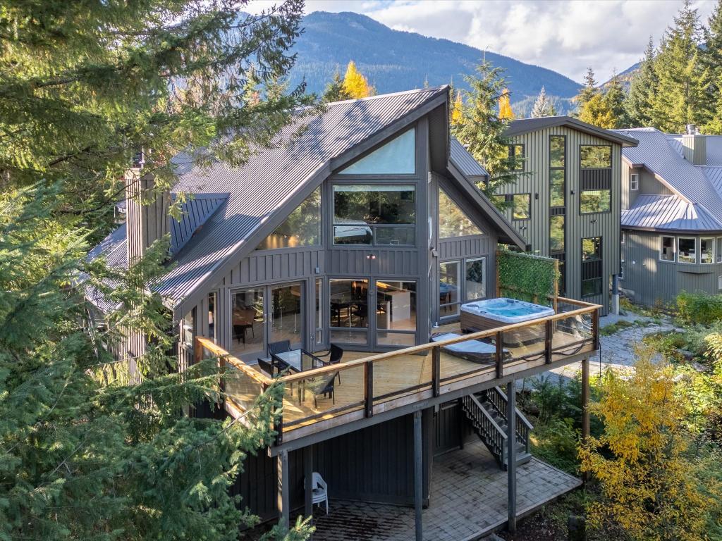 Indulge in the Whistler lifestyle with a leisurely stroll to the Village from this sought-after Whistler Cay Heights location, with the Valley Trail just outside your backyard. Gather around the outdoor fire or unwind year-round in your private hot tub. This well-designed home features four bedrooms, 3.5 bathrooms, a den, spacious media/entertainment level and a double garage. The upper floor is dedicated to the primary suite with ensuite, offering privacy from guest bedrooms and main living areas. A private dining area is served from the custom kitchen featuring curved granite countertop with sit-up bar opening to a cozy living room with a wood-burning fireplace. Generous decks, patios, and ample guest parking complete the package.