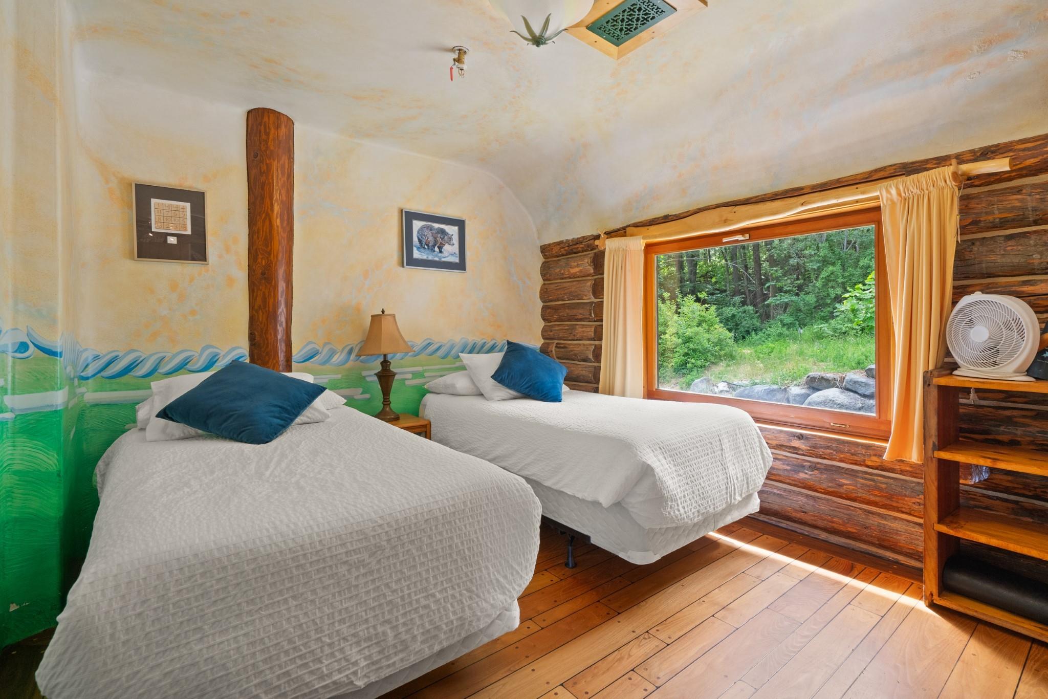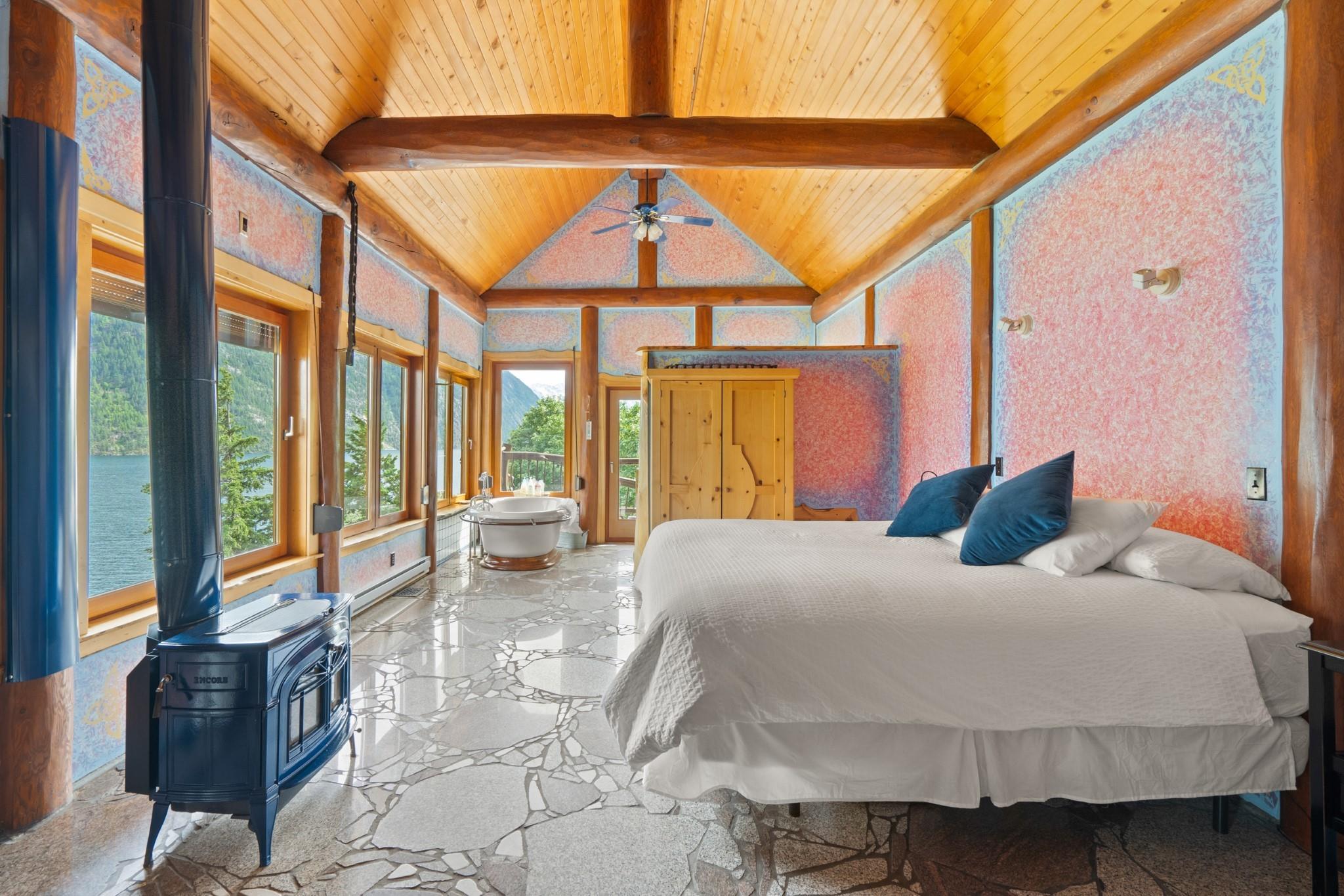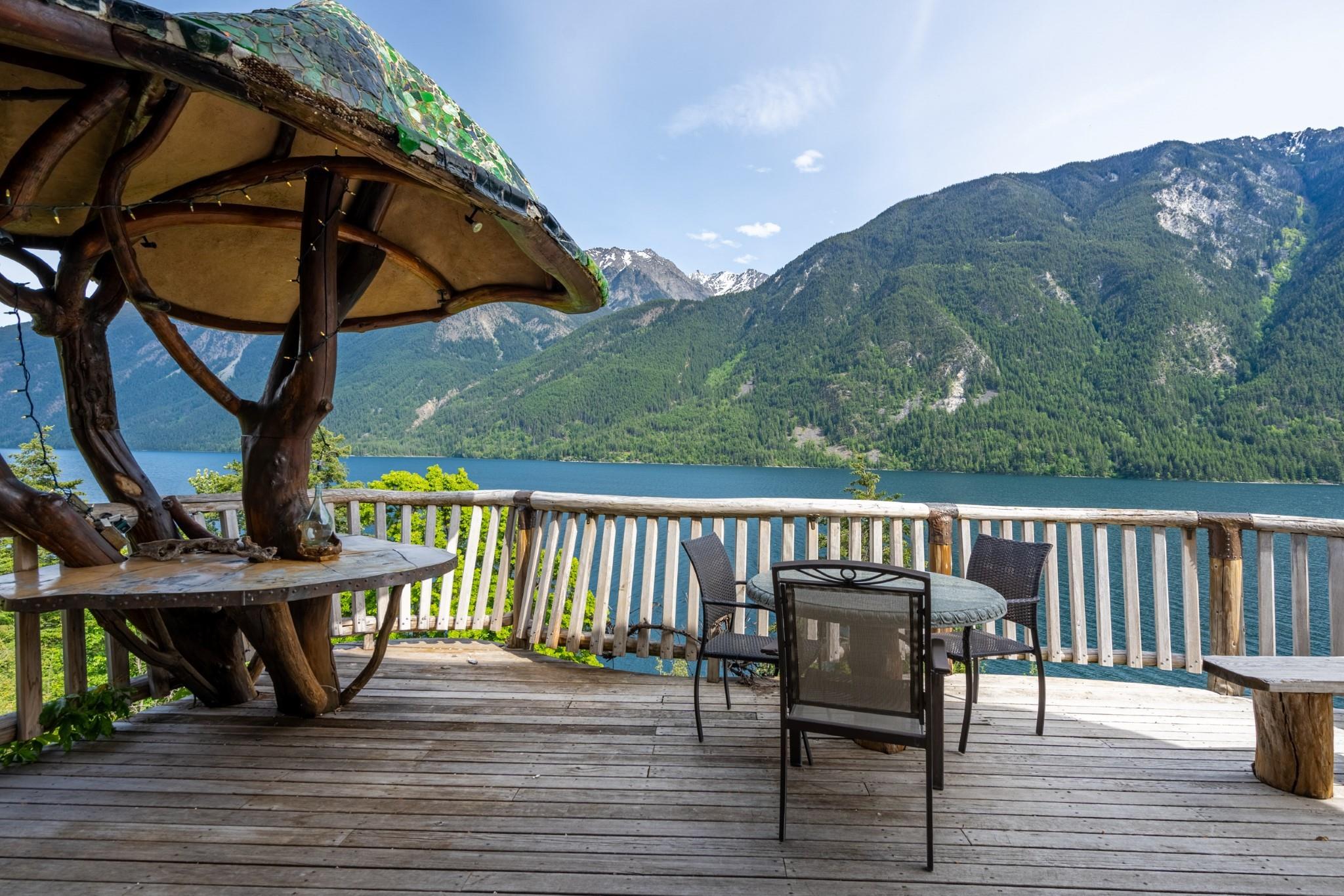 Escape from the Madness and embrace a life of tranquility with this extraordinary 14-acre OFF-GRID LAKEFRONT VILLA, offering self-sufficient living since 1940. Prepare to be captivated by the terraced organic gardens, vineyards, fruit trees, and two unique dwellings, all with stunning panoramic views of Anderson Lake and the majestic surrounding mountains. The charming 2br/2ba log cabin features custom-built cabinets, live-edge counters, a wrap-around deck, a wine cellar, a flex room, and a spacious workshop—perfect for all your creative or practical needs. Meanwhile, the masterfully designed Earthship, built seamlessly into the hillside, offers year-round geothermal warmth, a spacious bedroom and bathroom, a full kitchen, and a large living room. It also boasts a wood-fired sauna, a cold dunk tank, and houses the 8.3Kw hydro power plant, ensuring sustainable electricity for both homes. Flexible RR4 zoning provides a wealth of options for development or commercial opportunities. The property also includes over 1,000 feet of pebble and sand beachfront, ideal for launching into endless watersports or simply enjoying the peace of lakeside living. Meditate on one of the serene terraces, surrounded by the sounds, aromas, and healing energies of this enchanting retreat. Accessible via the Highline Road or by boat, this property is your gateway to self-reliance and harmony with nature. Words cannot fully capture the magic of 20100 Highline Road—call today to arrange a viewing and experience the freedom and wonder of this one-of-a-kind escape.