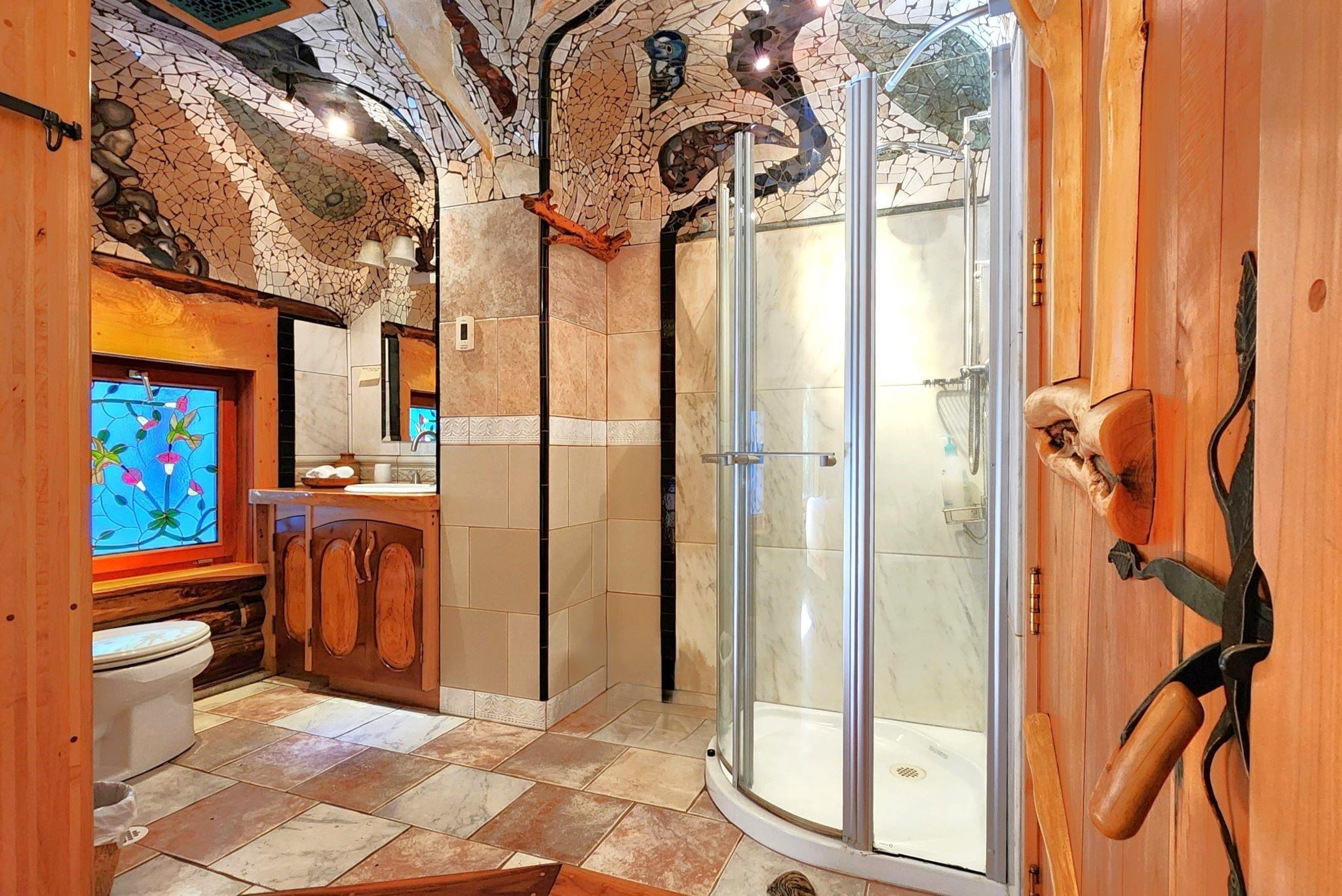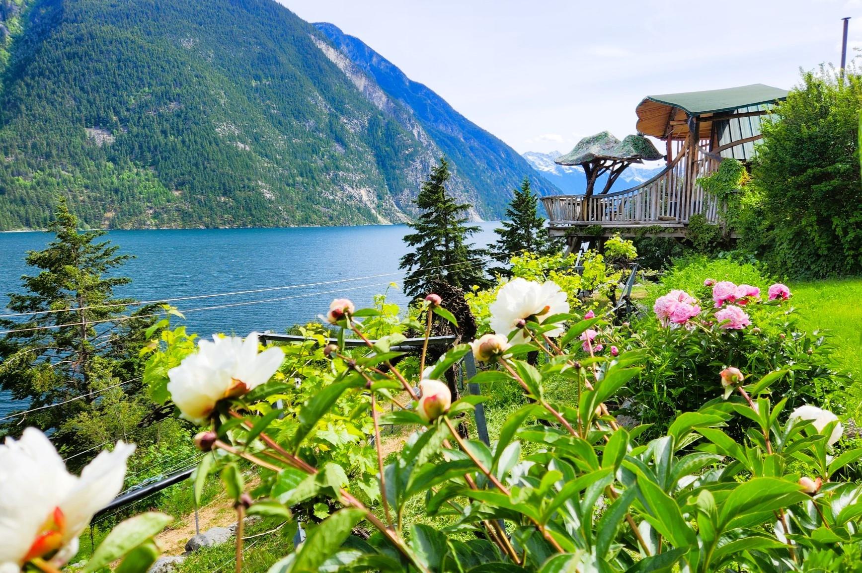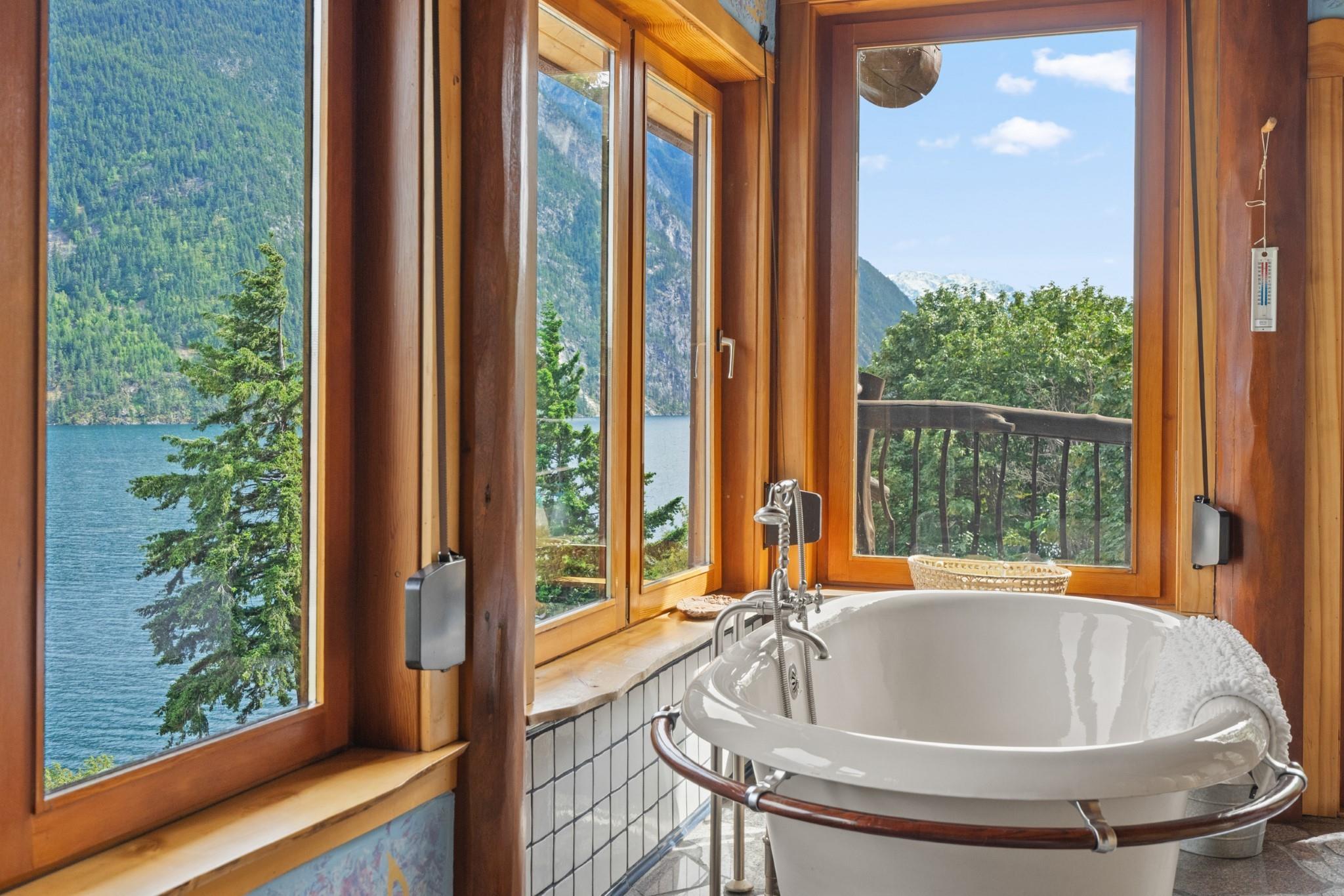 Escape from the Madness and embrace a life of tranquility with this extraordinary 14-acre OFF-GRID LAKEFRONT VILLA, offering self-sufficient living since 1940. Prepare to be captivated by the terraced organic gardens, vineyards, fruit trees, and two unique dwellings, all with stunning panoramic views of Anderson Lake and the majestic surrounding mountains. The charming 2br/2ba log cabin features custom-built cabinets, live-edge counters, a wrap-around deck, a wine cellar, a flex room, and a spacious workshop—perfect for all your creative or practical needs. Meanwhile, the masterfully designed Earthship, built seamlessly into the hillside, offers year-round geothermal warmth, a spacious bedroom and bathroom, a full kitchen, and a large living room. It also boasts a wood-fired sauna, a cold dunk tank, and houses the 8.3Kw hydro power plant, ensuring sustainable electricity for both homes. Flexible RR4 zoning provides a wealth of options for development or commercial opportunities. The property also includes over 1,000 feet of pebble and sand beachfront, ideal for launching into endless watersports or simply enjoying the peace of lakeside living. Meditate on one of the serene terraces, surrounded by the sounds, aromas, and healing energies of this enchanting retreat. Accessible via the Highline Road or by boat, this property is your gateway to self-reliance and harmony with nature. Words cannot fully capture the magic of 20100 Highline Road—call today to arrange a viewing and experience the freedom and wonder of this one-of-a-kind escape.