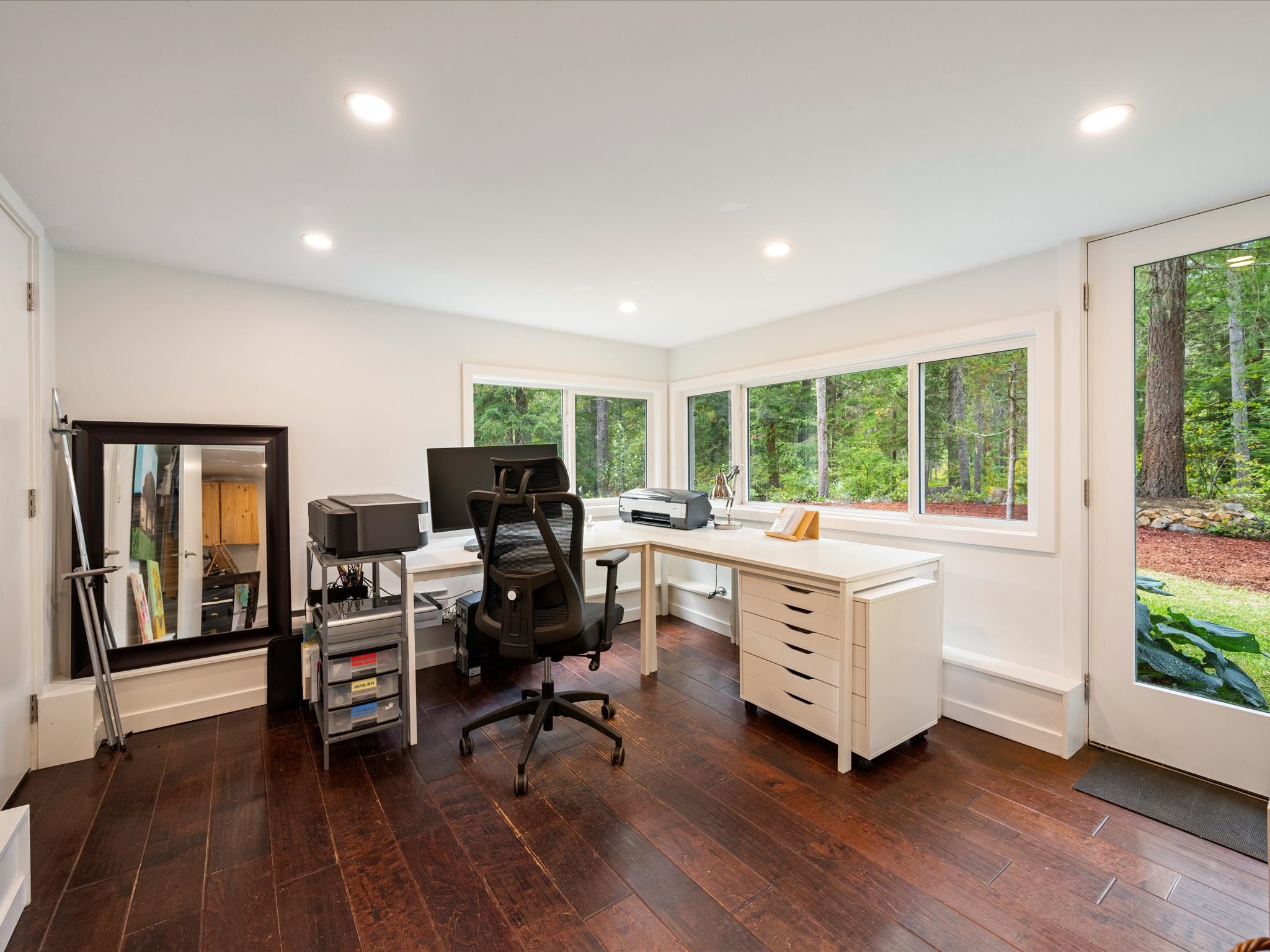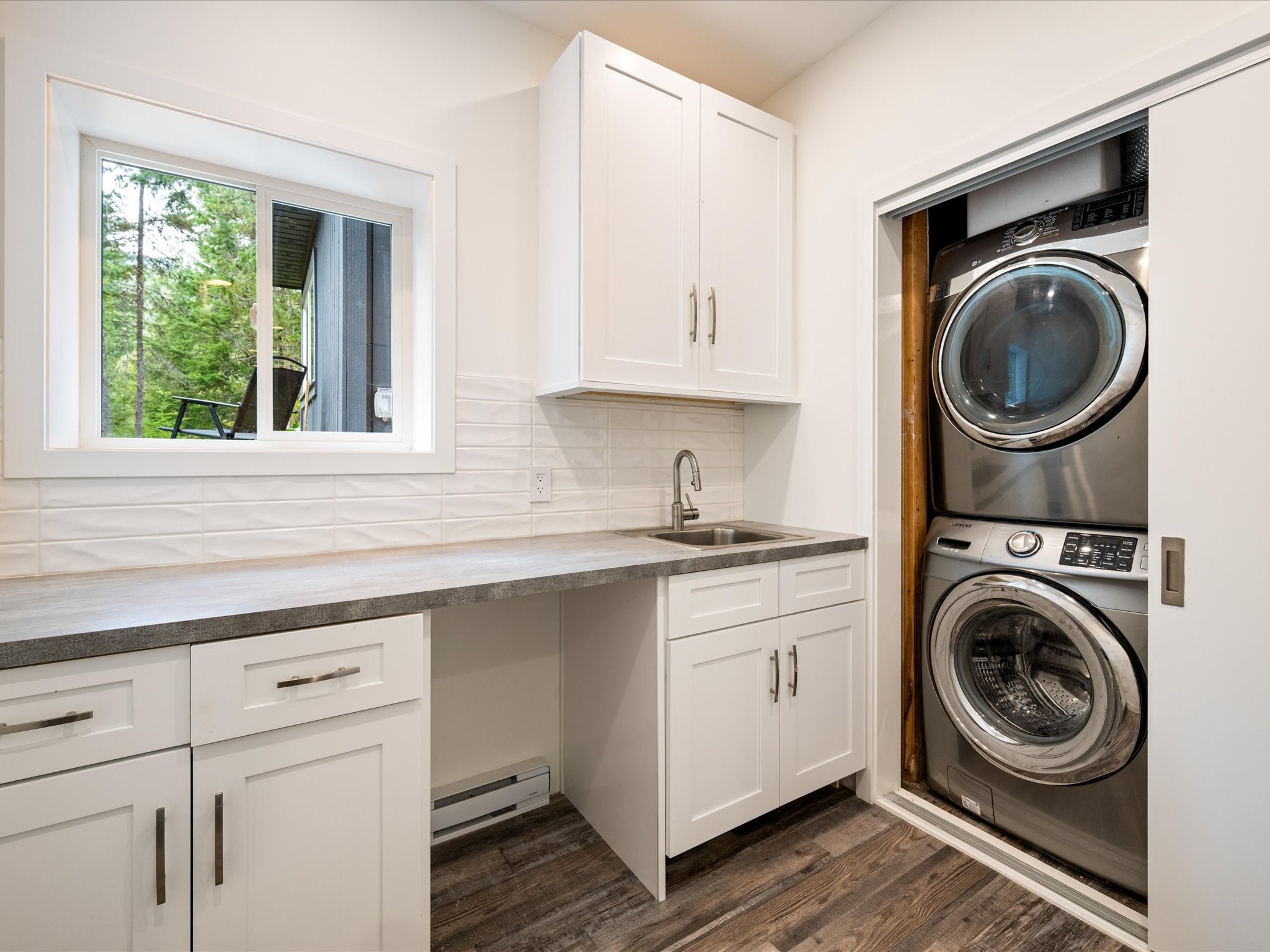 Tucked into the private enclave of Black Tusk Village, 16 Garibaldi Drive is a carefully remodeled mountain residence that pairs contemporary comfort with the quiet clarity of the Sea-to-Sky. A short drive from Whistler, it offers privacy without sacrificing convenience. The main level opens to a light-filled living area with vaulted ceilings, expansive windows, and an airtight wood-burning fireplace. A well-considered kitchen with stainless steel appliances flows naturally to the lounge. Adjacent is a room currently used as a dining space, though it offers flexibility as a bedroom, den, or office depending on need. Upstairs, two inviting bedrooms and a full bathroom provide a comfortable private wing, while the lower level has been transformed into a master retreat with nine-foot ceilings, generous natural light, and a spa-inspired ensuite. Both bathrooms were professionally remodeled with heated floors. Other improvements include updated electrical with sub-panel and EV charging, tasteful LED lighting, and a deck with glass railings. The property features fresh landscaping with a perennial garden, a recently paved driveway with ample parking—including space for an RV—and a two-room studio beneath the deck, ideal as a workspace or creative retreat. The home enjoys an expansive back deck in a private treed setting with mountain views, backing onto Pinecrest Lake with access to a dock to launch a canoe or paddleboard. Black Tusk Village amenities include private lake access, tennis courts, and trails. Within this setting, 16 Garibaldi Drive is quietly distinguished by its extensive upgrades, versatile layout, and seamless readiness to enjoy.