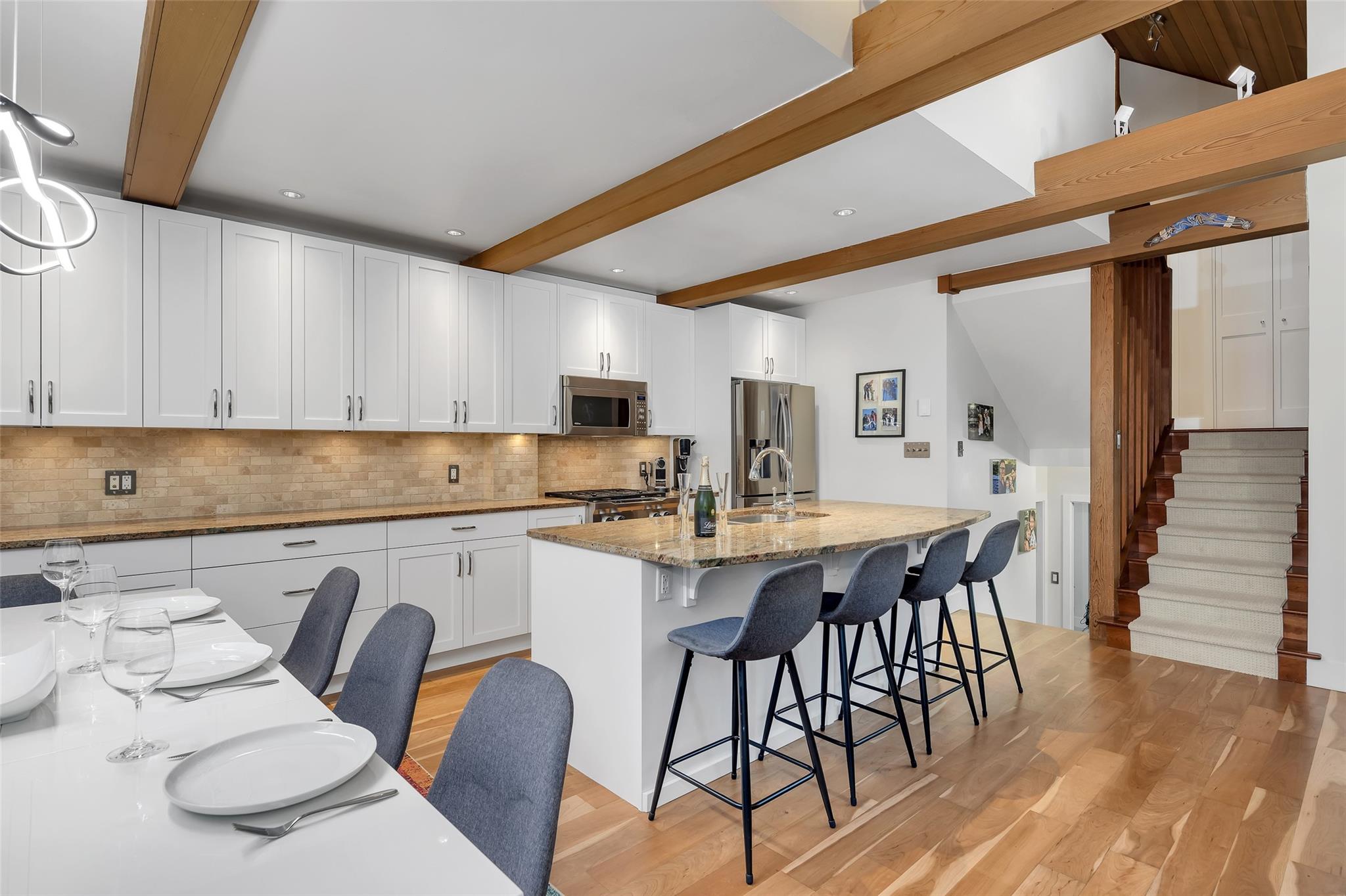 Welcome to Alpha Lake Village—an exclusive enclave where lakefront serenity meets Whistler’s vibrant mountain lifestyle. This 2,000+ sq. ft. residence has been beautifully renovated to the highest standard, offering 4 bedrooms, 3 bathrooms, an office, a vaulted-ceiling main level with chef’s kitchen and dining area, and a spacious lower-level living room designed for entertaining. Sunlight floods in through picture windows framing mountain views, while two fireplaces bring warmth inside and large wraparound decks invite year-round outdoor living. Residents enjoy private lake access, a beach, and direct connection to the Valley Trail, with Creekside ski lifts just minutes away. Rarely available and highly sought-after, this home offers ample gear storage and Whistler living at its finest.