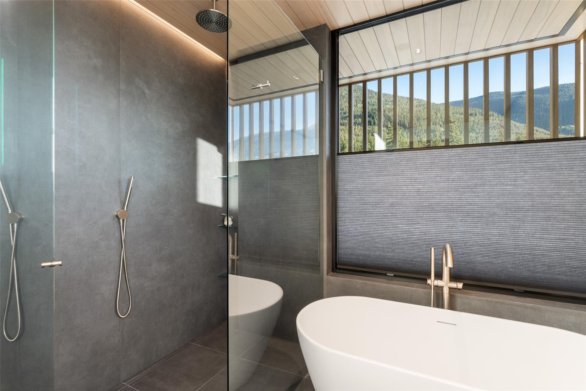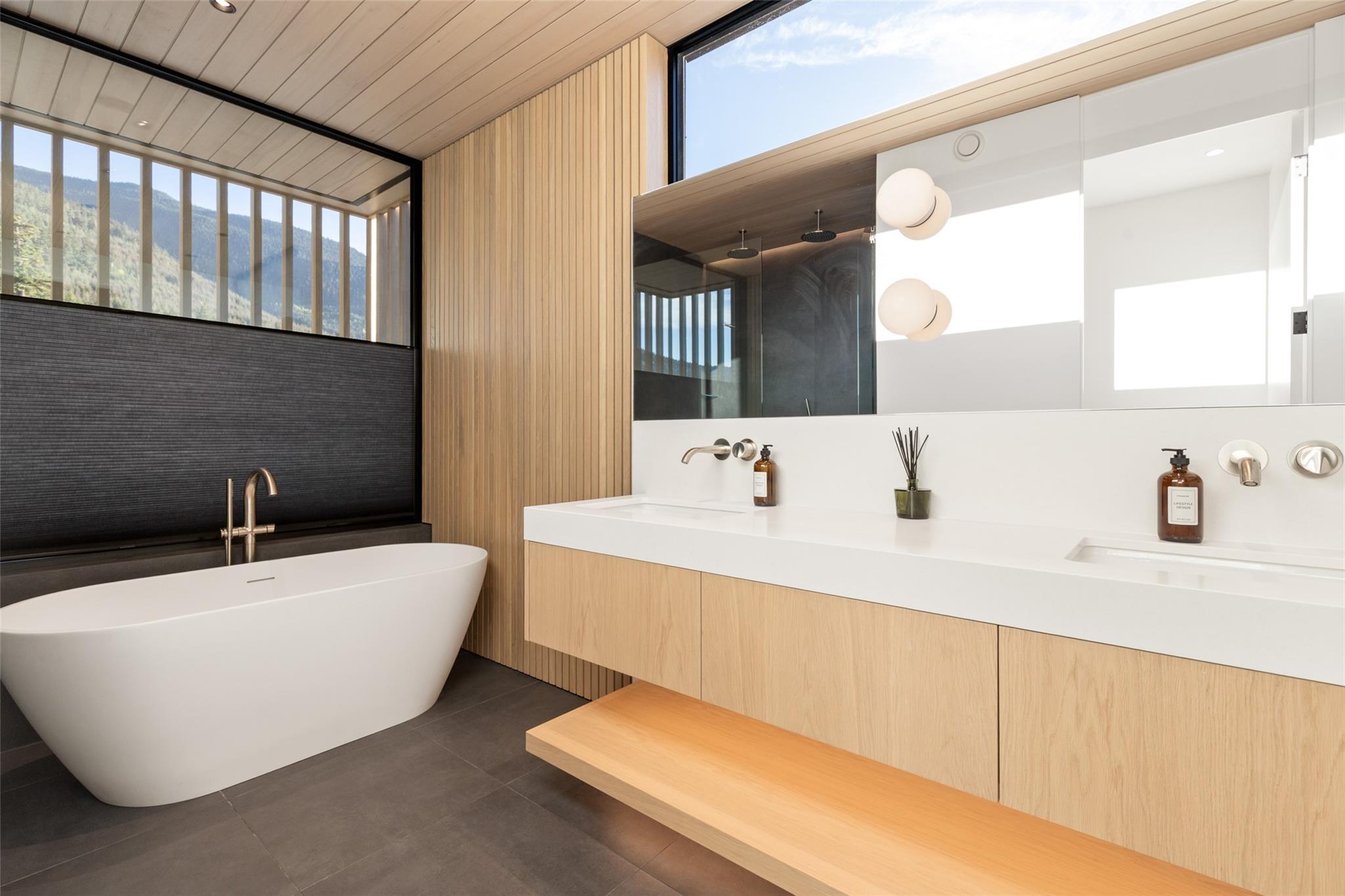 Experience refined mountain living at its finest in this 4-bedroom + media, 4-bath modern home in WedgeWoods. Thoughtfully designed with architectural concrete, wide-plank oak flooring, and heated large-format porcelain tile, this residence balances natural elegance with smart technology. Expansive European glazing and custom floor-to-ceiling doors, frame mountain views and create a seamless indoor–outdoor connection. Anchoring the open living area, a dramatic 72" fireplace brings warmth and sophistication, while the chef's kitchen adorned with panelled Fisher & Paykel appliances inspires effortless entertaining. A fully integrated Control4 system manages lighting, audio, shades and comfort throughout. The versatile 1-bedroom, 1-bath coach home provides ideal space for guests or rental income. Exceptional craftsmanship and modern finishes deliver sophisticated alpine living, just minutes from Whistler Village.