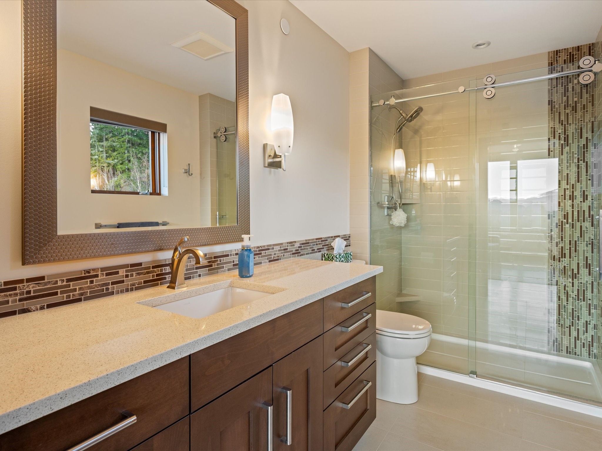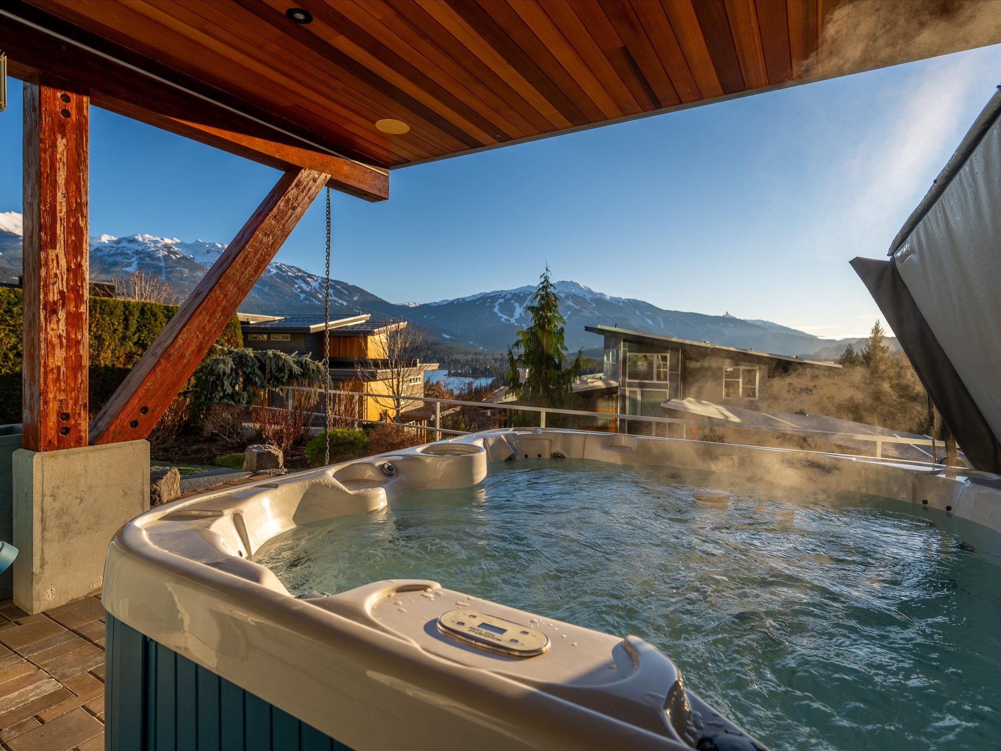 Perched in the prestigious Baxter Creek neighbourhood, 8529 Ashleigh McIvor Drive offers all-day sun and breathtaking panoramic views of Green Lake and the surrounding mountains. This 3,936 sq ft modern mountain chalet features 4 bedrooms, 4.5 bathrooms, and a refined blend of natural materials and thoughtful design. Rich custom wood finishes, radiant heated tile floors, and expansive windows define the open-concept living space, which flows seamlessly to a sun-drenched deck perfect for sunset moments. The chef’s kitchen includes premium appliances, granite counters, and a large island perfect for entertaining. The luxurious primary suite captures stunning views and includes a spa-inspired 5-piece ensuite. The lower level features two bedrooms, a family room, gym, and patio-level hot tub. A legal 1-bedroom suite offers added flexibility. Located just minutes from Whistler Village, this is a rare opportunity to own a true lifestyle property in one of Whistler’s most sought-after neighbourhoods.