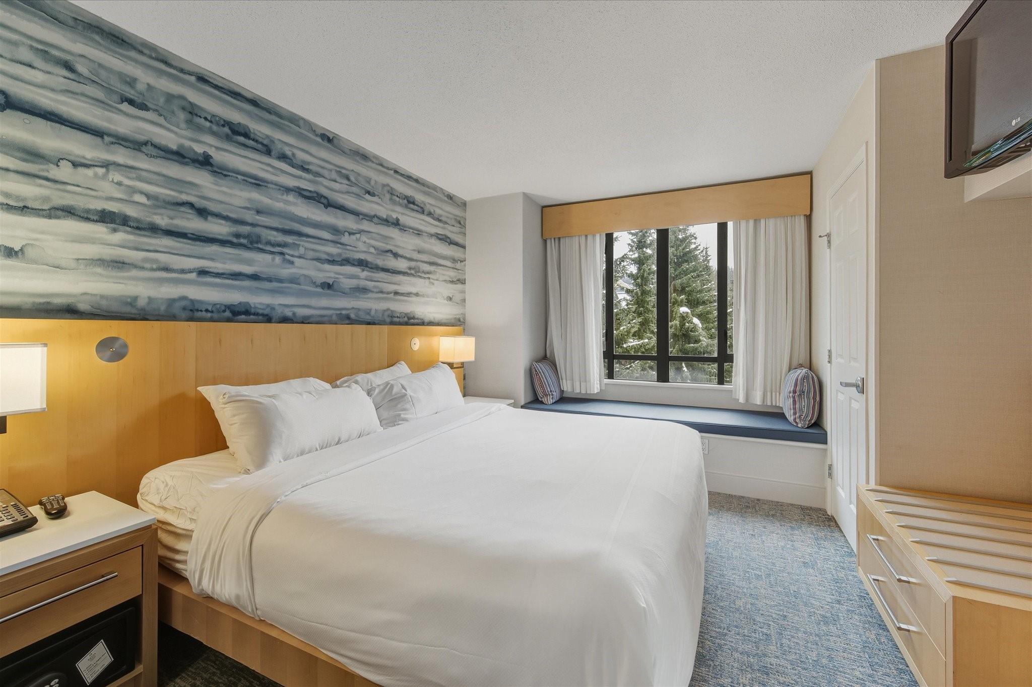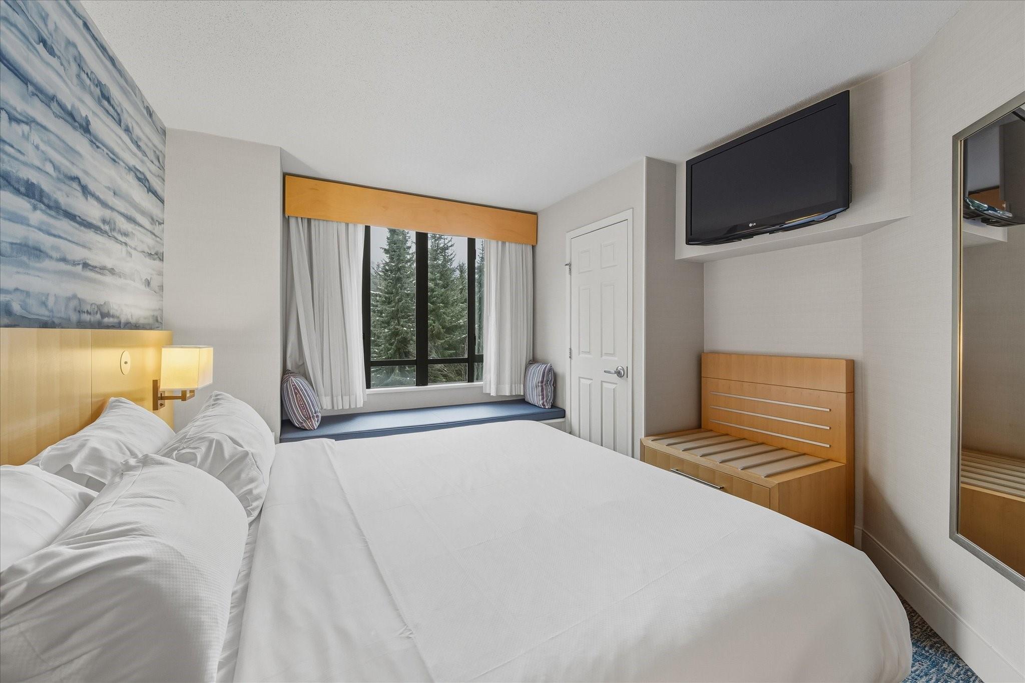 The Delta Whistler Village Suites is one of Marriott's most popular properties, set in the center of Whistler Village and just steps to all the resort amenities, shops and ski lifts. This suite features a full kitchen, in-suite washer/dryer, gas fireplace & an excellent sunny southwest exposure from the patio which overlooks the pool side of the building with views up to Whistler Mountain. The hotel has a fabulous heated outdoor pool, 3 hot tubs, sauna, gym, ski storage and rentals, bike storage and rentals and a shuttle bus. The staff treats both owners and guests like family (is also pet friendly) which is why this hotel condo building is so popular & also Brickworks Pub & Hy's Steakhouse are both located on the main floor. This is a Phase 2 condo hotel which allows owner use of 28 days winter & 28 days summer & when you're not using the suite all the rentals are managed for you bringing excellent revenues.