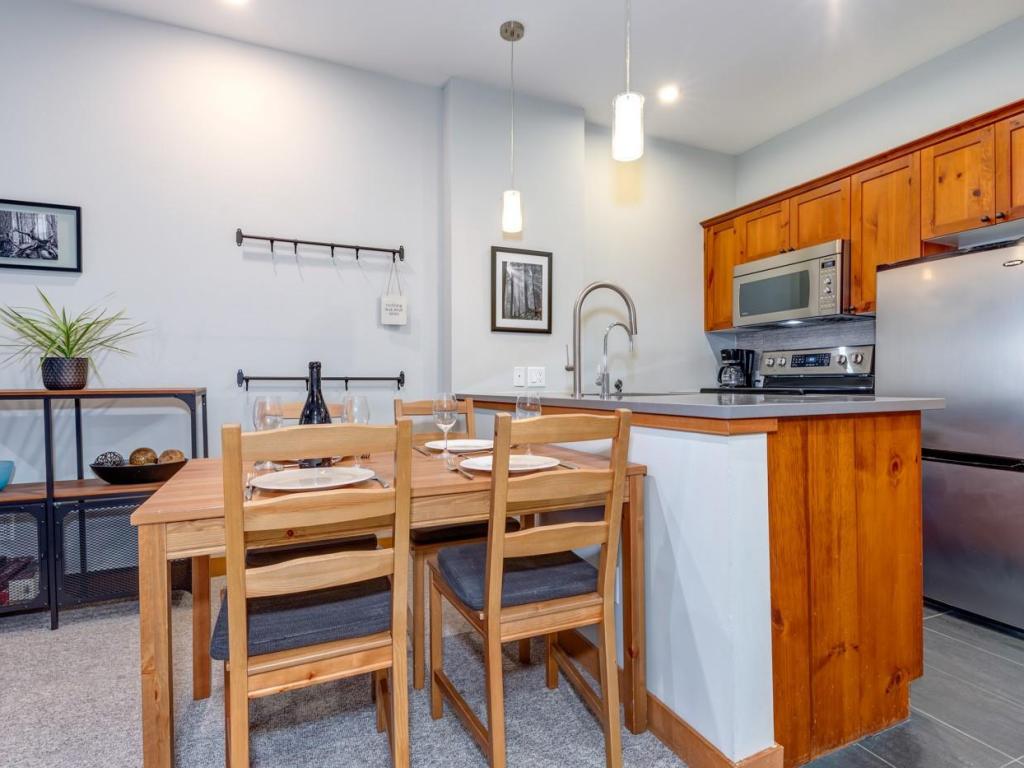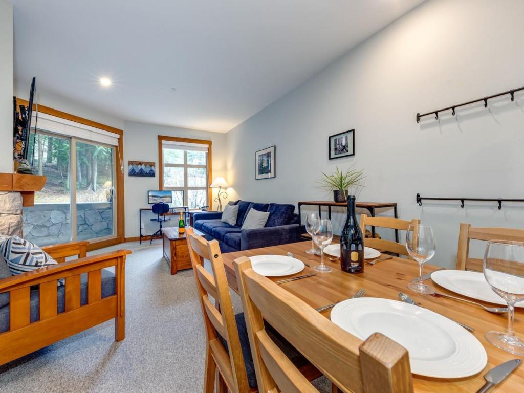 Experience the ultimate Whistler lifestyle at Lost Lake Lodge, a premier Blackcomb Benchlands address. This 570 sq. ft., 1-bedroom, 1-bathroom ground-level condo offers privacy and easy access, overlooking peaceful forested grounds. Completely updated unit featuring upgrades to the kitchen and bathroom, appliances (including in-suite washer and dryer), lighting, carpet and tile. Relax by the cozy gas fireplace in the open living area or on your private balcony after a day of adventure. Building amenities include a year-round heated outdoor pool, hot tub, exercise room, underground parking, complimentary village shuttle, and on-site professional management. Quiet location, yet steps from Lost Lake with year-round trail network and ski out option to your door. With nightly rental privileges, unlimited personal use, and no GST, this condo is ideal as a residence, weekend getaway, or investment property.