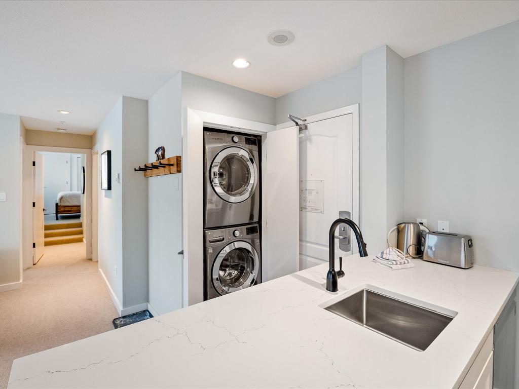 SOLD FULLY FURNISHED! Welcome to this stunning top-floor residence in the Town Plaza complex, perfectly situated in the vibrant heart of Whistler Village. This beautifully renovated 2-bedroom, 2-bathroom unit was fully updated in the summer of 2021, showcasing a sleek and modern design throughout. The kitchen features high-end appliances & chic cabinetry. Every detail has been thoughtfully upgraded, from the heated tile floors and luxurious wool carpeting to the elegant new fireplace surround, updated window coverings, and air conditioning for year-round comfort. Town Plaza amenities include a front desk, hot tub and fitness room, ski locker, and secure underground parking. Zoned for NIGHTLY RENTALS! Strata fee includes: Internet, cable, hydro, gas, front desk.