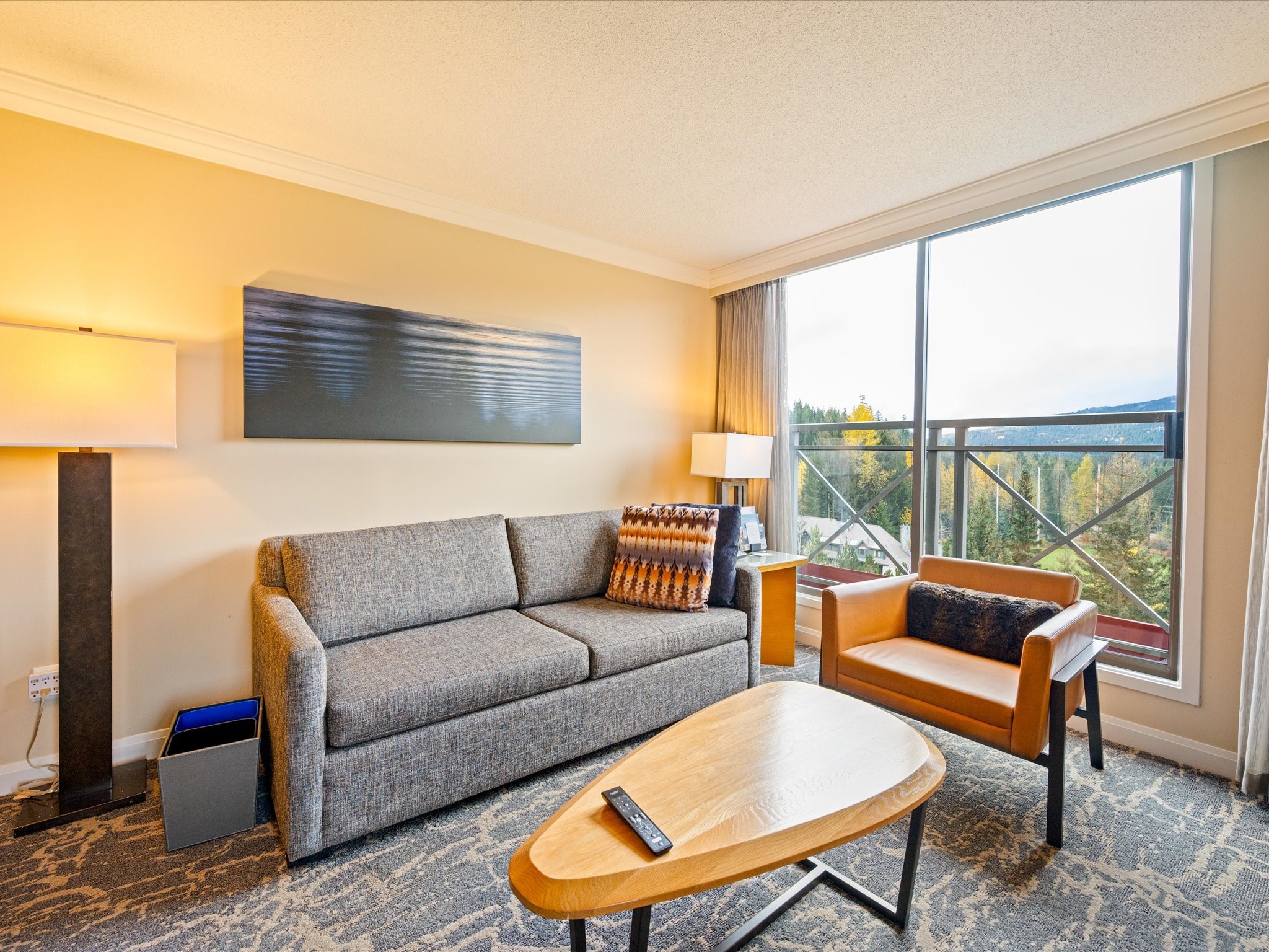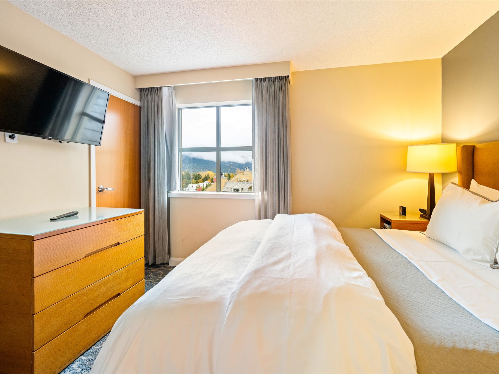 The Westin Resort & Spa: An exceptional opportunity has just become available. #854, is a private 2-bedroom, 2-bathroom corner hotel condo suite spanning 741 sq.ft. of refined mountain Resort living. This bright and beautifully appointed (Phase 2) condo features two balconies: a charming Juliette balcony and a large private corner terrace. capturing sunny views over the Whistler golf driving range, with afternoon light and spectacular mountain sunsets. Westin is celebrating the 25th anniversary with the well-maintained features and benefits of ownership. Plus building amenities with a relaxing lobby lounge, pool, spa, conference facilities, in-hotel restaurant & bar lounge + shops. Designed with comfort in mind, the open-concept kitchen, island, dining, and living area create an inviting space for entertaining after a fantastic day of skiing, hiking or biking. Also, you'll enjoy engaging community events, art galleries, and take time for fine dining options, or there is a well designed kitchen facilities in the condo suite. The private primary bedroom offers a tranquil retreat complete with a walk-in closet and spa-inspired ensuite. The guest bedroom offers the same private corner location with well appointed ensuite. Westin hotel management is often recognized by many global luxury travel websites & magazines for owner + hotel guest service excellence. Inquire today for a detailed information package and discover how to make this luxurious mountain retreat your Whistler getaway.