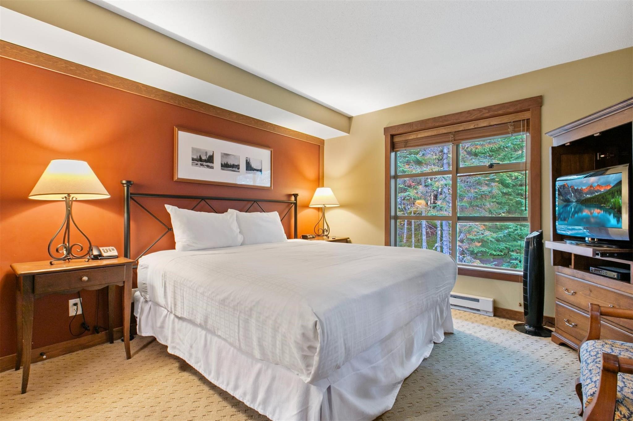 One of the best locations in Horstman House, this forest facing top-floor, 1-bedroom quarter share is a sanctuary of peace and tranquility. Blending modern design with natural warmth, it features an open layout, private balcony, and spa-like 4-pc. ensuite with a deep soaking tub. Enjoy a fully equipped kitchen and onsite amenities including a heated pool, hot tub, gym, ski storage, and secure parking. Its convenient location makes for a pleasurable stroll into the Village or enjoy the complimentary shuttle bus to the ski hill throughout the day, and the ski-home trail from Blackcomb Mountain taking you back to Horstman House at the end of the day. Ownership provides 1 week every 4 weeks, with rental income potential and a staffed front desk to cater to your every need. Monthly HOA covers utilities, property taxes, insurance, maintenance, snow clearing and landscaping.