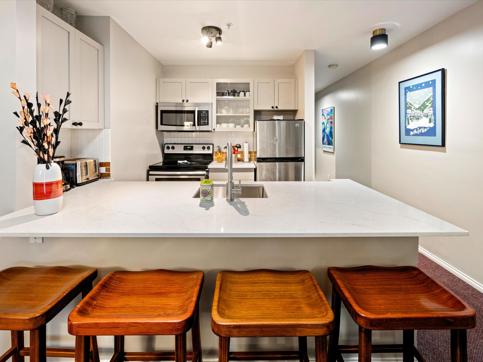 Unique Opportunity at Glacier's Reach! This 1-bedroom, 1-bathroom townhome offers an expansive 705 sq. ft. of comfort and one of the few in the complex with a private hot tub on a covered deck for year-round enjoyment. Relax on two spacious decks overlooking the peaceful forest, or cozy up by the gas fireplace after a day on the slopes. Newly renovated and fully furnished , it’s ready for personal use or as a successful rental. Oriented in a quiet location on the outskirts of Whistler Village, you’re just steps from world class dining, shopping and adventure. Glacier’s Reach features secure underground parking, a heated pool, sauna, and fitness center, all just steps from Whistler Village or a quick ride on the complimentary shuttle to the slopes. Don’t miss this rare opportunity—schedule your visit today!