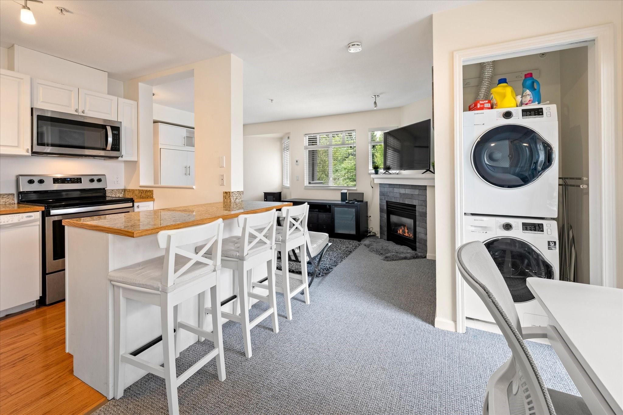 Rare southeast-facing corner townhome in prime Whistler Village location! Bright and upgraded with new appliances, carpet, and smart storage throughout. Features include a sunny deck with mountain views, gas fireplace, jetted tub, in-suite laundry, and custom Murphy bed with space for a pullout sofa. Heated entry area ideal for ski gear. Just a 2-min walk to shops, restaurants, and village action, yet tucked away for peace and quiet. Zoned for nightly rentals. Includes 2 secure underground bike storage areas. Feels larger than the floor plan suggests! GST applicable.