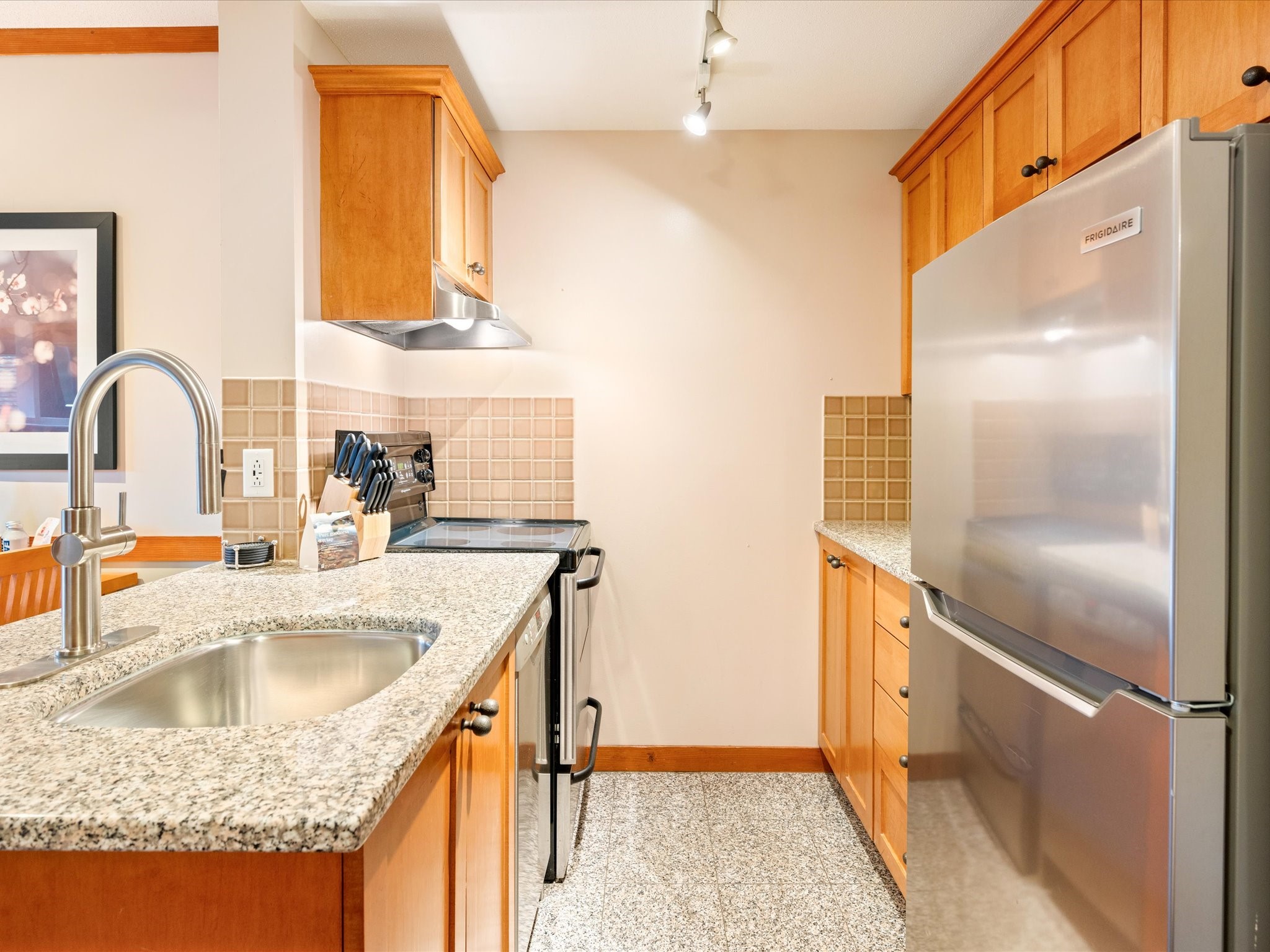 Phase II property at Whistler center location. Owner can use up to 28 days in summer phase and 28 days in winter phase. Nightly rental allowed but has to be managed by the hotel management company. Room has a full kitchen, one King size bed in the bedroom, and one queen size pull-out sofa bed in the living room. Building provides one complimentary underground parking spot for owner use and one ski locker. This hotel generated top rental in Whistler for the owners, not mention the steps distance to the gondolas, trails, commercials, transportations and everything else this No.1 ski resort in North America offers.