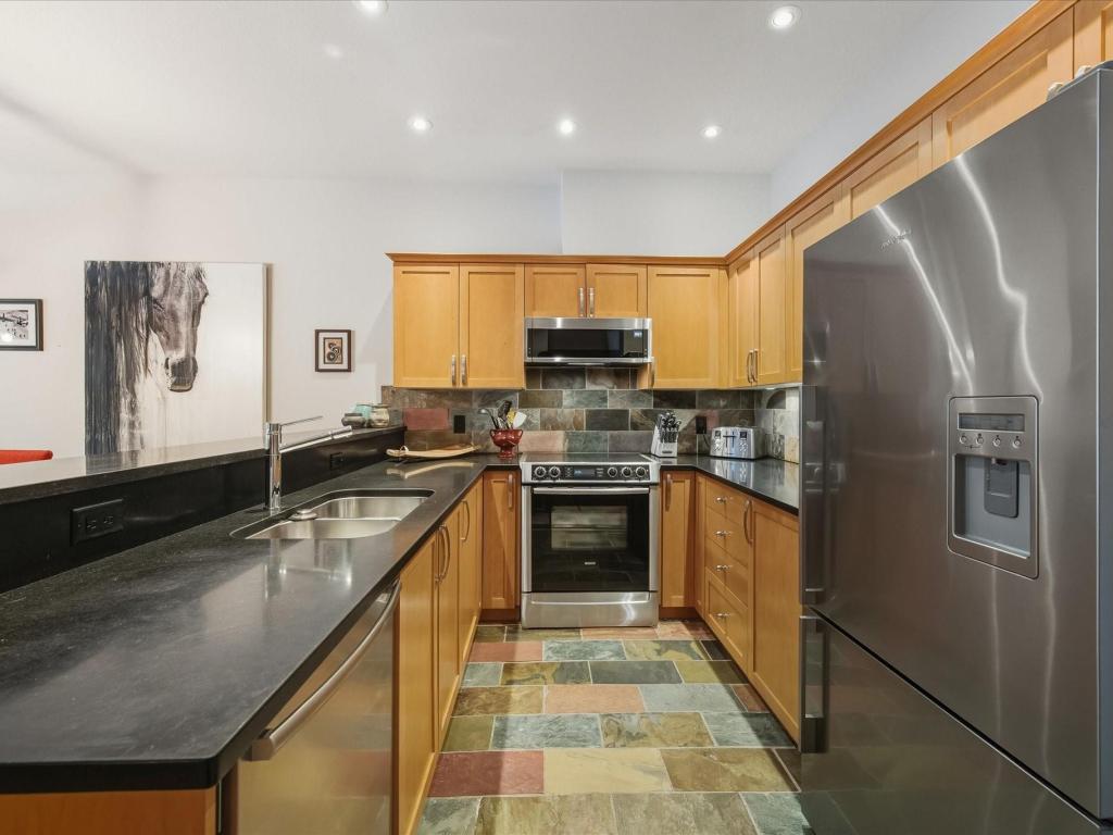 Fabulous 3-bedroom townhome located in Montebello: one of Whistler's most desired Village area developments, just a short walk to your favourite restaurants and shops! Bright open living area with vaulted ceilings, exposed beams, stone and wood accents, beautiful wood fireplace and tasteful decor provide all the character of a classic ski chalet, while modern conveniences that include stone counters, stainless steel appliances, heated flooring, a single car garage, and private hot tub provide comfort and utility. This unique property is ready to be used this Winter season, enjoy cross-country skiing, snowshoeing, or walks along Fitzsimmons Creek, all located just outside your door.