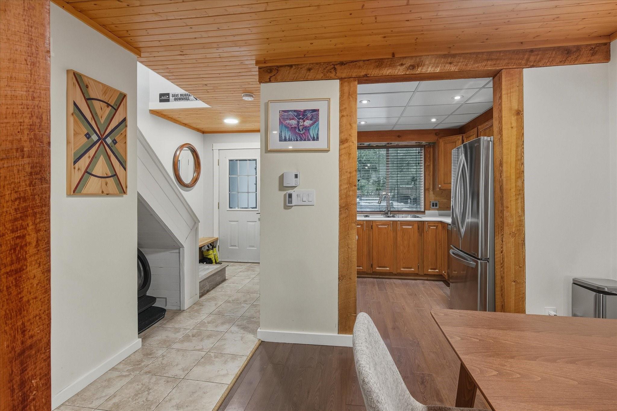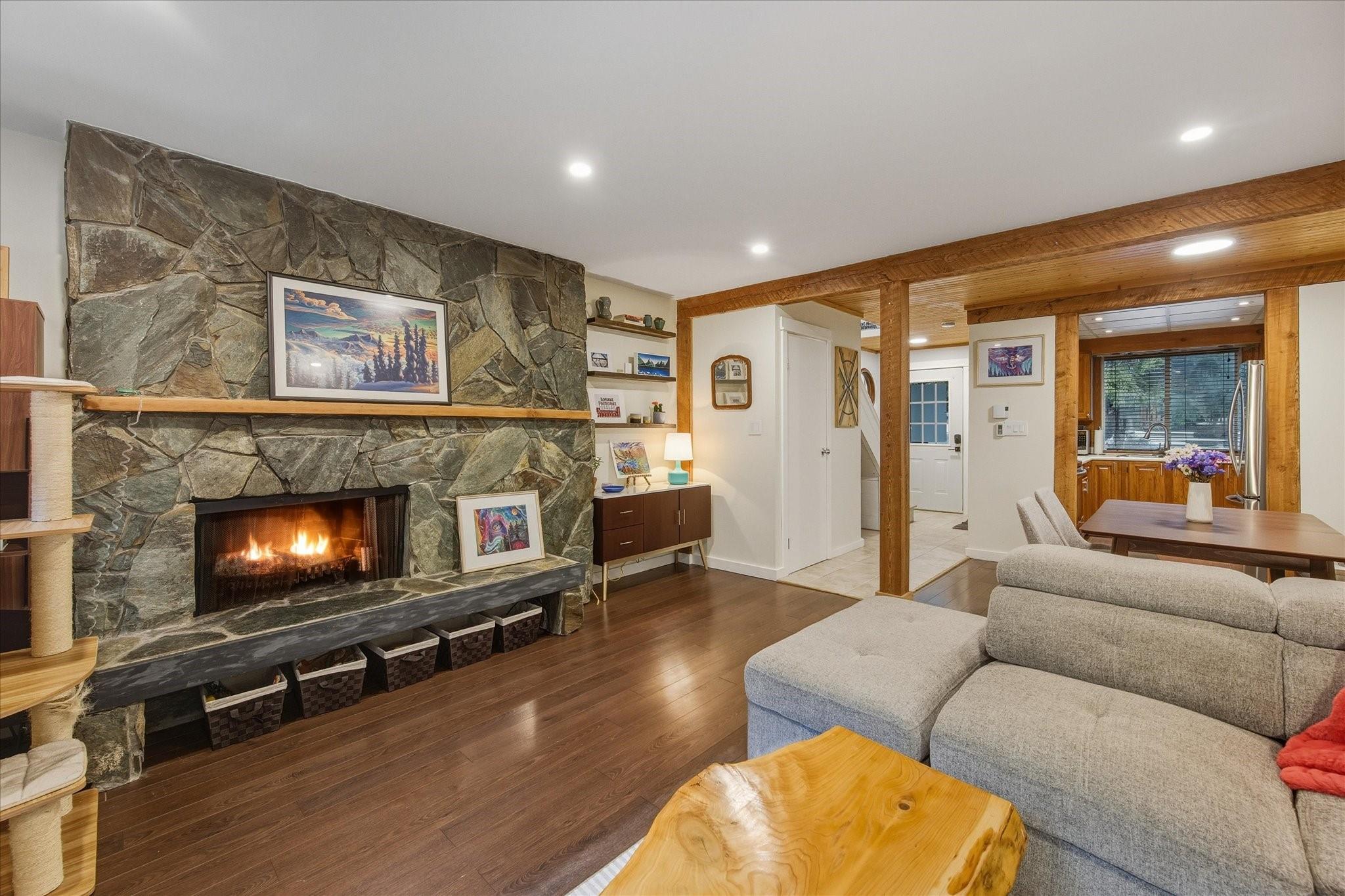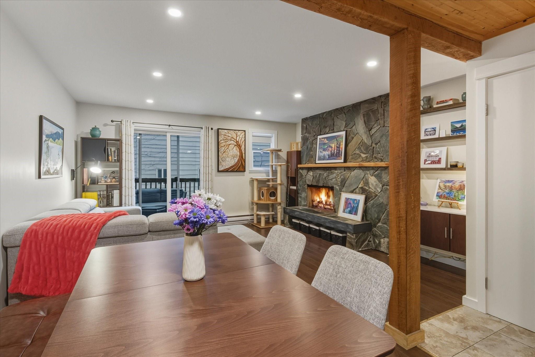 Welcome to the Sitzmark complex in Alpine Meadows, where this charming 2-bedroom townhome offers the perfect opportunity to plant roots in Whistler. Spanning 975 sq. ft., this home features a kitchen with stainless steel appliances and a convenient powder room on the main floor. Upstairs, you’ll find two bedrooms and a renovated semi-ensuite bathroom with radiant heated floors and motion-sensor lighting. The living area is defined by a classic stone hearth that adds timeless mountain character, while a brand-new sliding glass door provides access to an 88 sq. ft. deck with space for your BBQ. A second private deck is located off the upper bedroom, providing a quiet outdoor escape. Efficiency is key with upgraded vinyl windows, a newer W/D, and a hot water tank from 2021. Storage is a breeze with an approximately 450 sq. ft. crawl space (4’10" high) for all your gear, plus a dedicated 3-bike shed. Located across the road from Whistler Secondary and seconds from the Valley Trail, you are steps from the Alpine Cafe and Meadow Park Rec Centre. With a bus stop just 50m away, this well-maintained home offers the perfect blend of local convenience and mountain lifestyle.