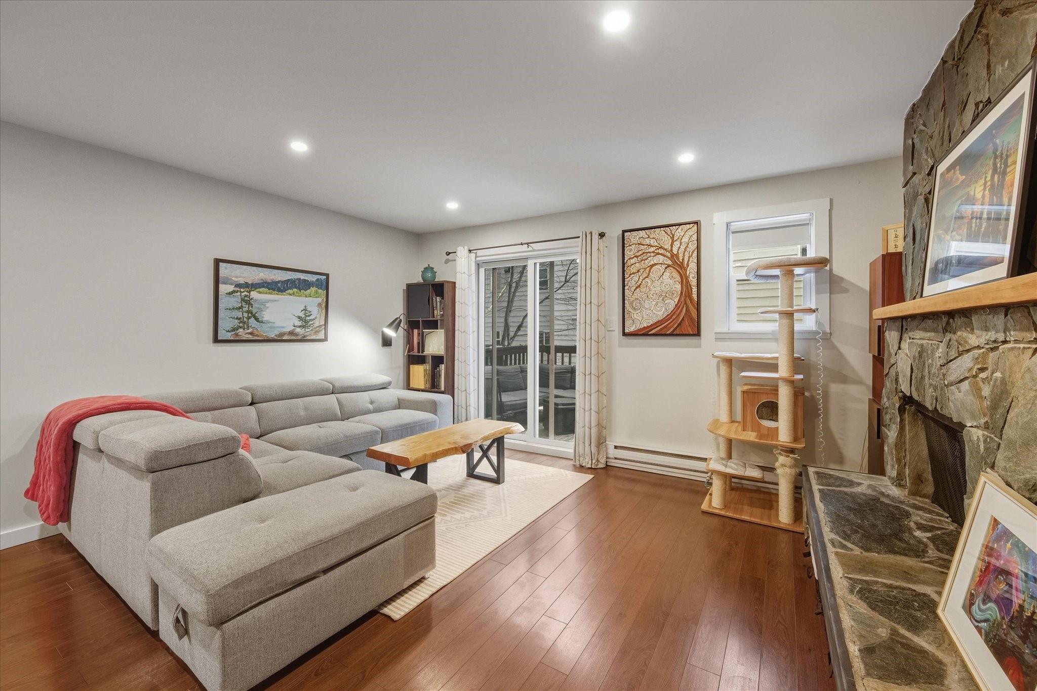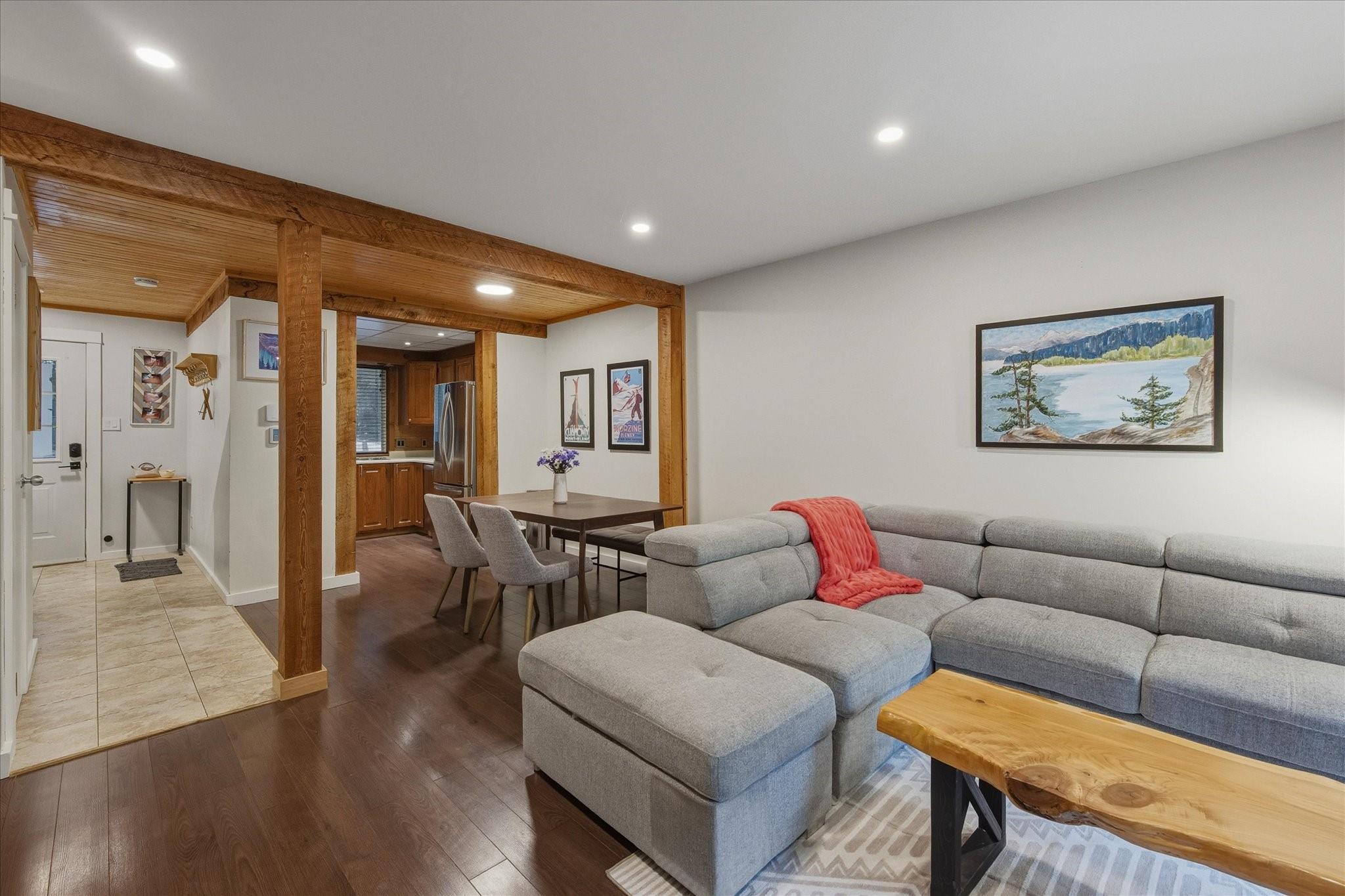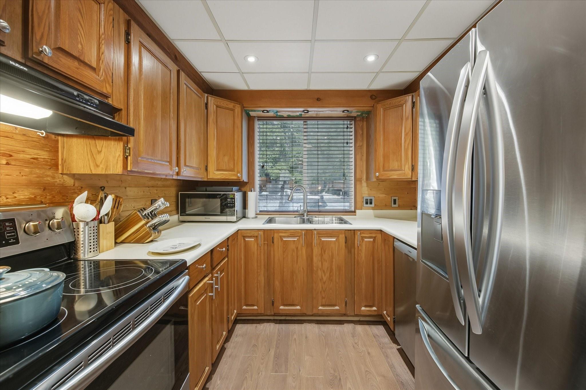 Welcome to the Sitzmark complex in Alpine Meadows, where this charming 2-bedroom townhome offers the perfect opportunity to plant roots in Whistler. Spanning 975 sq. ft., this home features a kitchen with stainless steel appliances and a convenient powder room on the main floor. Upstairs, you’ll find two bedrooms and a renovated semi-ensuite bathroom with radiant heated floors and motion-sensor lighting. The living area is defined by a classic stone hearth that adds timeless mountain character, while a brand-new sliding glass door provides access to an 88 sq. ft. deck with space for your BBQ. A second private deck is located off the upper bedroom, providing a quiet outdoor escape. Efficiency is key with upgraded vinyl windows, a newer W/D, and a hot water tank from 2021. Storage is a breeze with an approximately 450 sq. ft. crawl space (4’10" high) for all your gear, plus a dedicated 3-bike shed. Located across the road from Whistler Secondary and seconds from the Valley Trail, you are steps from the Alpine Cafe and Meadow Park Rec Centre. With a bus stop just 50m away, this well-maintained home offers the perfect blend of local convenience and mountain lifestyle.