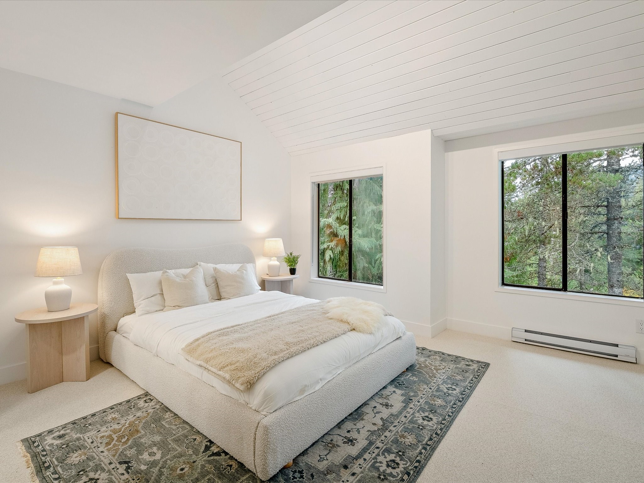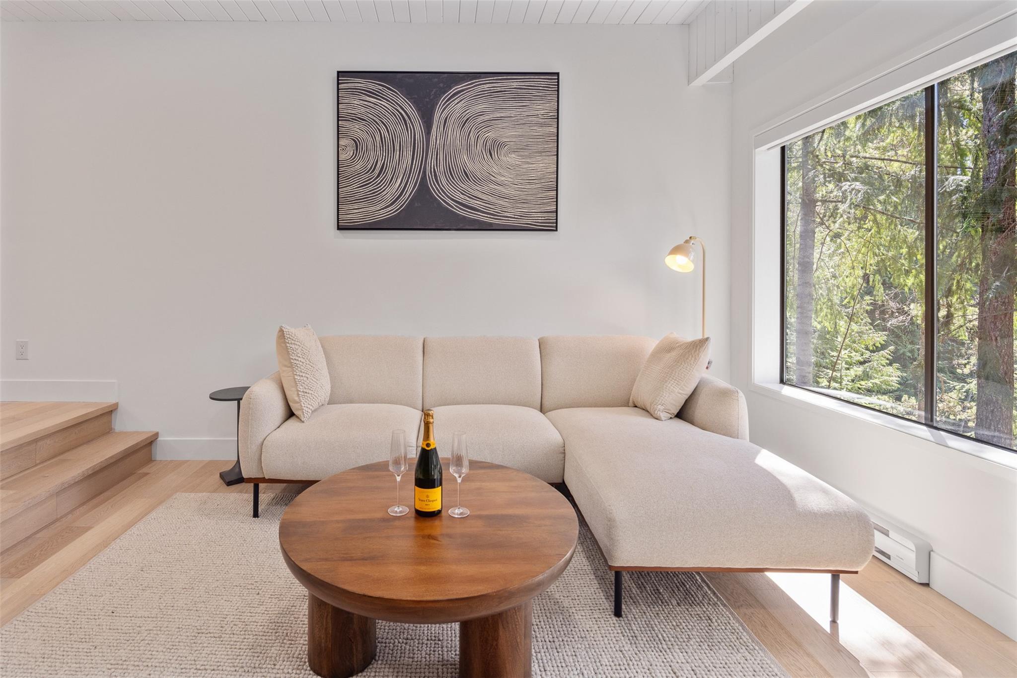 Set on the shores of Alpha Lake, this exquisitely renovated 3-bed, 2-bath townhouse in Twin Lakes offers a perfect blend of luxury and alpine serenity. White oak hardwood floors flow through an open living space anchored by a striking wood-burning fireplace. The custom kitchen with oak cabinets and Caesarstone countertops is designed for effortless entertaining. Step onto your deck to take in breathtaking inlet views. Spa-inspired bathrooms feature heated floors, quartz countertops, a soaker tub, and private sauna. Twin Lakes offers a private beach, dock, outdoor pool, tennis court, and ski shuttle to the gondolas. Just 5 minutes from Creekside, this is the ultimate year-round retreat or weekend getaway. Embrace the Whistler lifestyle, surrounded by nature and adventure at your doorstep.