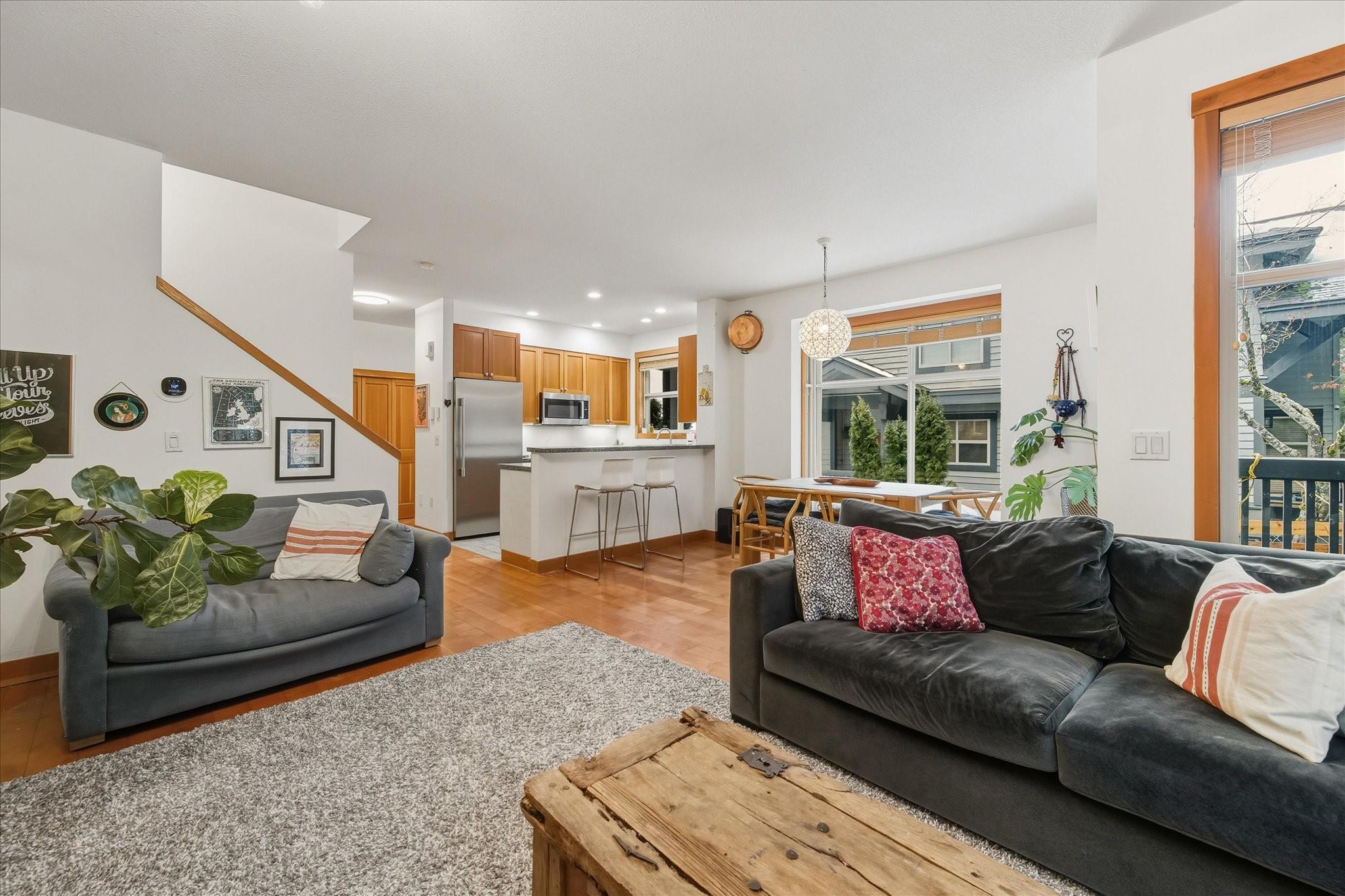 The Glades end unit; it doesn't get better than this. 4 beds + den, backing onto a private greenbelt in the quiet and picturesque Spring Creek neighbourhood. This property boasts updated appliances, ample light, a gas stove and fireplace, and is well known for its spacious rooms and peaceful setting. These common feel like single family homes, with large windows, 2 large patios (one fit with a hot tub) 2 car garage + so much storage! These end units are rarely available and one of a few!