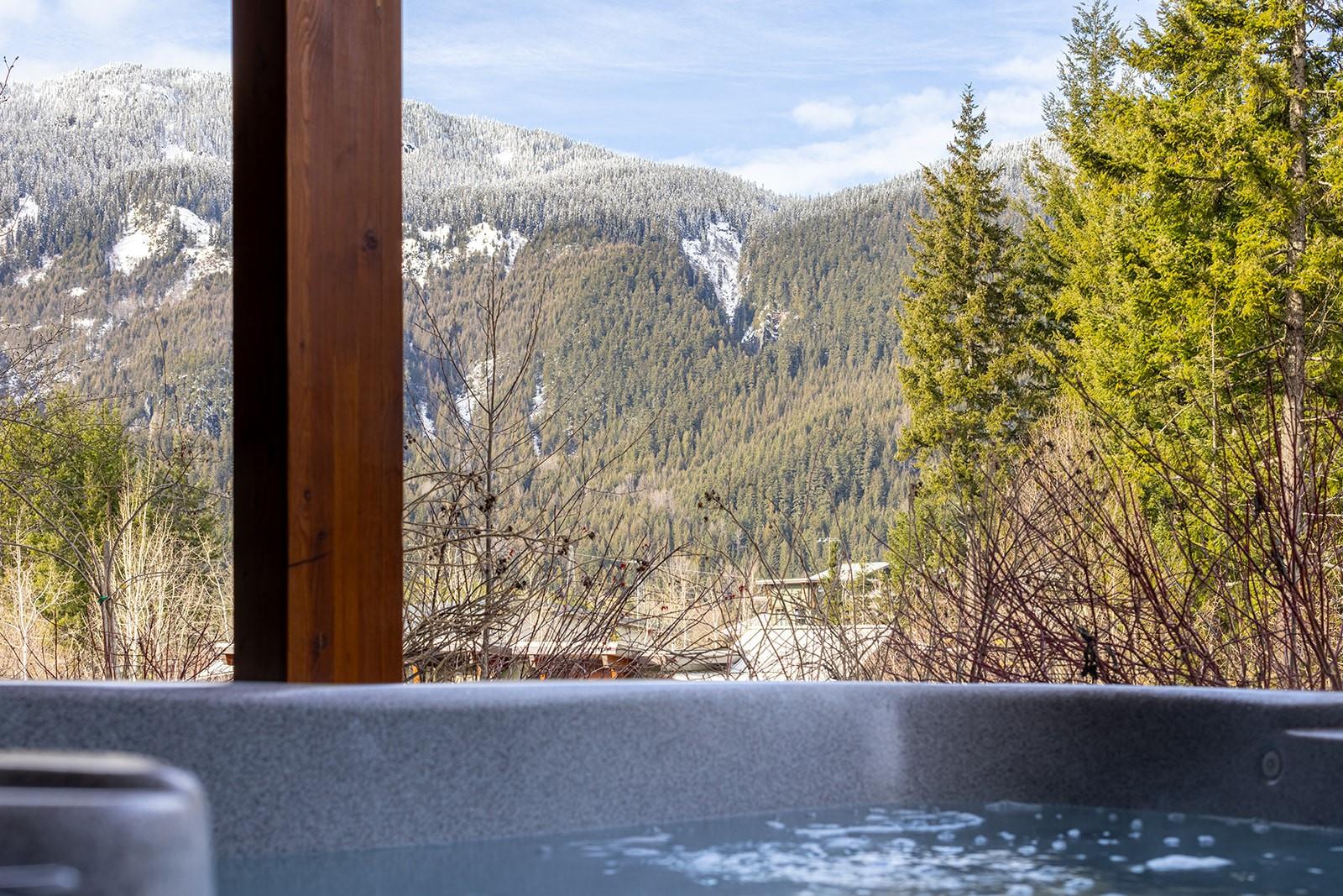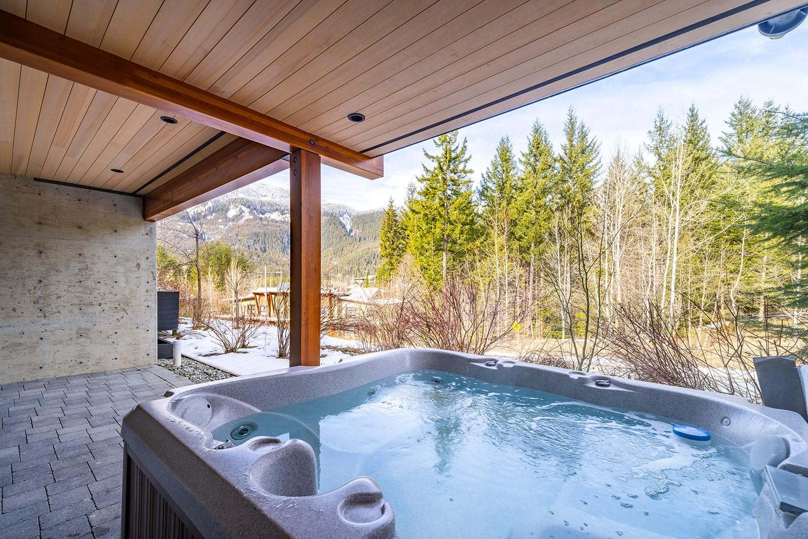 Beautiful contemporary townhouse in the sought-after Basalt development at Cheakamus Crossing. This 4-bedroom/Flex/Media room, 3.5 bathroom home offers radiant in-floor heating throughout, wide plank oak flooring, high ceilings and abundant natural light. The open concept living space features a gourmet kitchen with Sub-Zero fridge, Wolf range, wine fridge and quartz waterfall countertops, flowing into a cozy living area with gas fireplace. Enjoy mountain living with a private hot tub deck, spa-inspired primary suite with a walk-in closet and ensuite, plus a large lower flex/media room or bedroom with a steam shower. Double car garage with built-in storage. Steps to trails and minutes to Whistler Village. **Some photos have been staged with AI due to the tenancy in place.