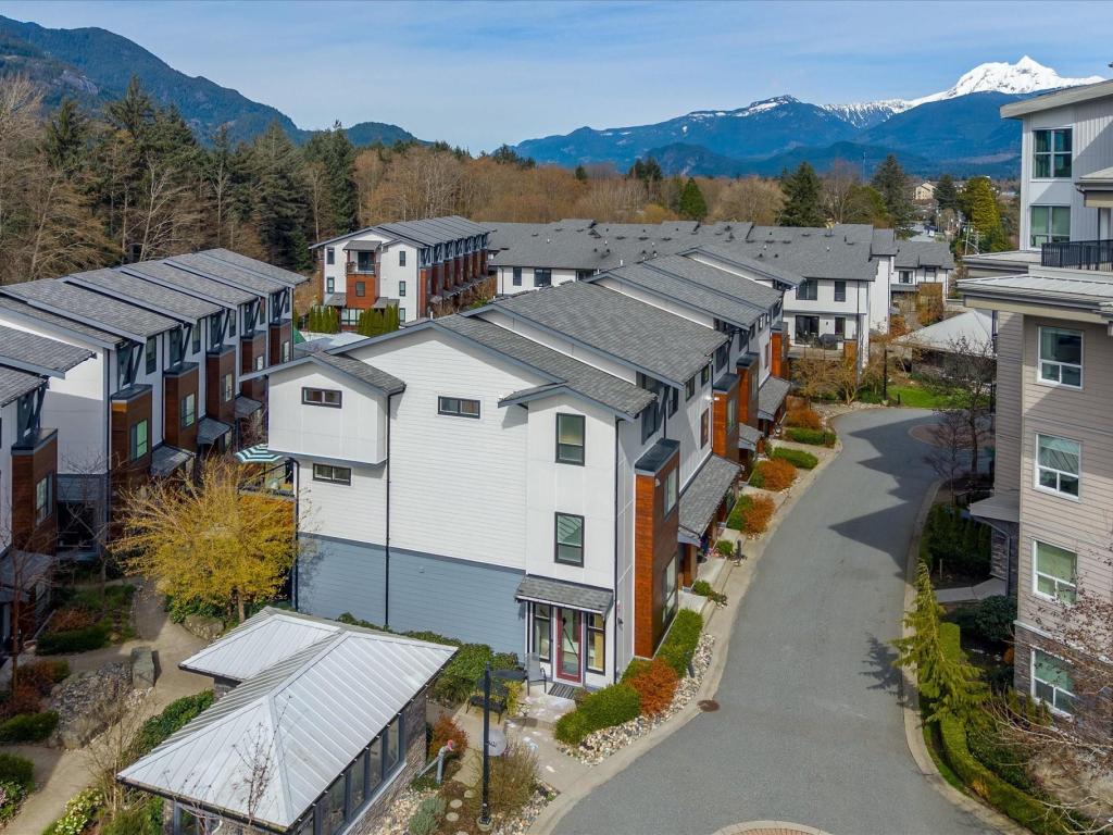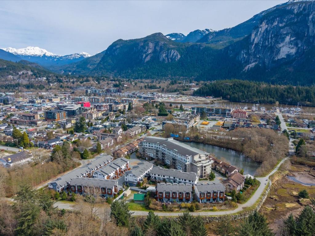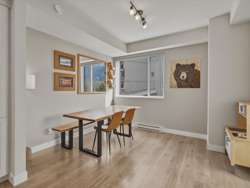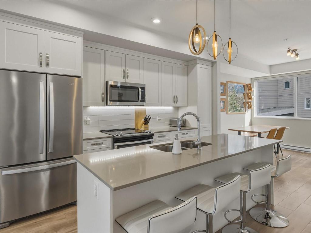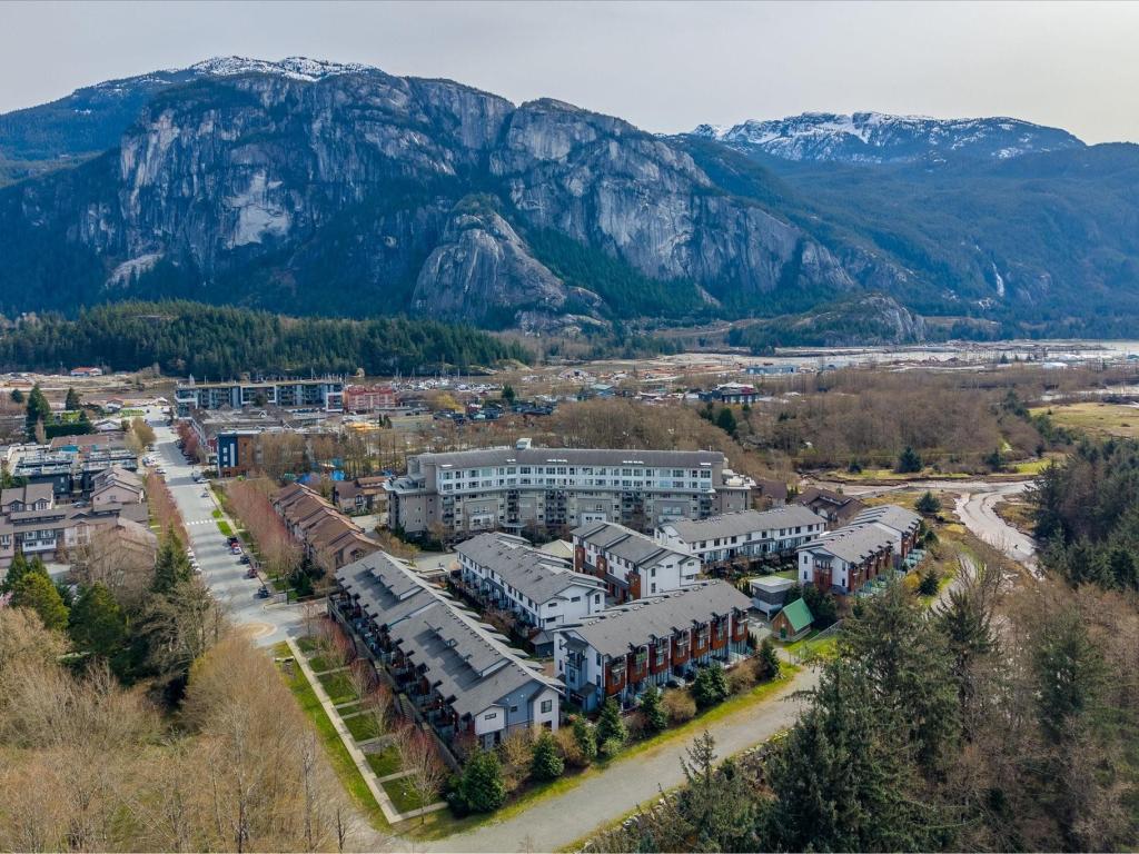 Beautiful bright end-unit at Soleil in a quiet location with green space outlook and views of the Chief from the deck and bedroom. Just steps to the estuary and trails, and only a few blocks to downtown amenities. Spacious sun-filled foyer leads to an open-concept main floor with 9’ ceilings, wide plank laminate flooring, and a southwest-facing sundeck. Functional layout flows from the living area to the kitchen with island, bar seating, stainless appliances, and into a generous dining space. Primary bedroom features a walk-in closet and ensuite. Includes two secured parking stalls and lots of storage. Enjoy easy access to nature right outside your door. Great condition and move-in ready!