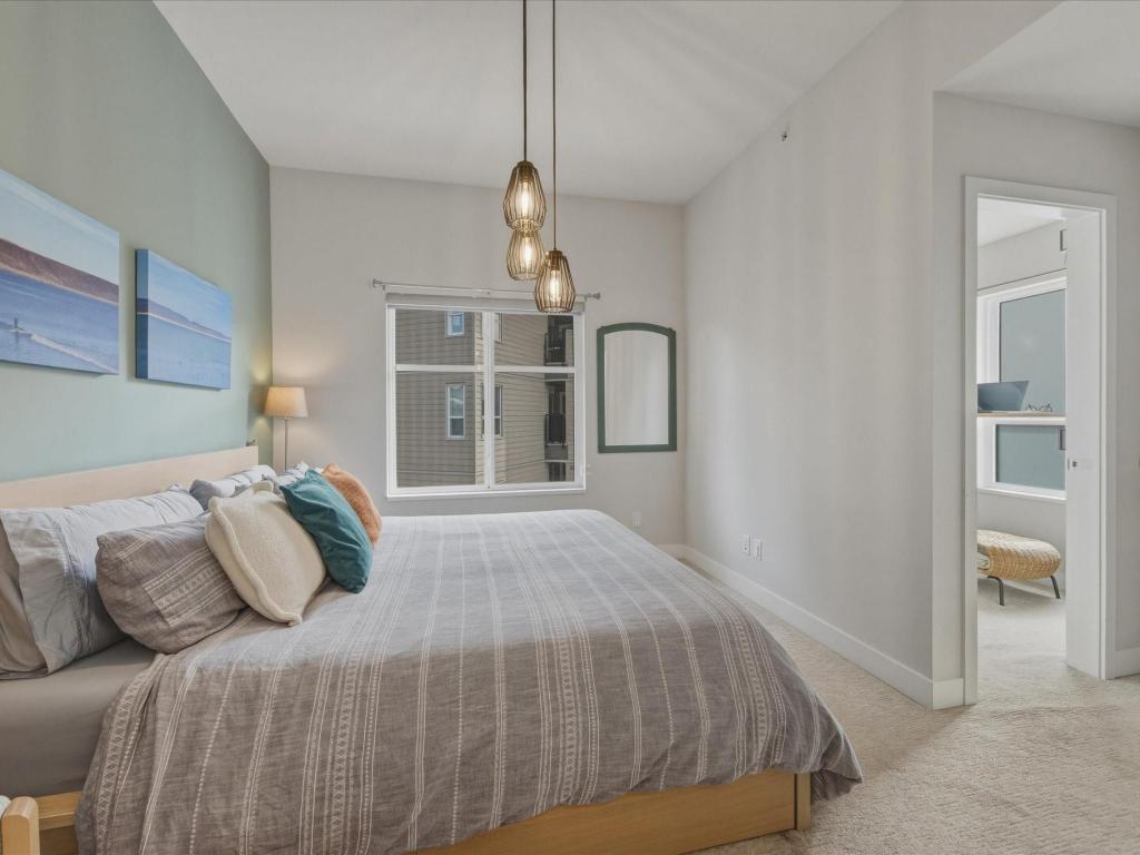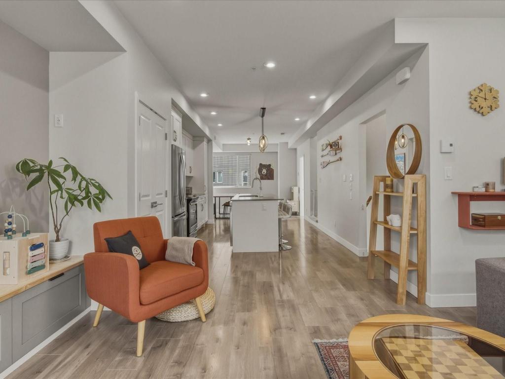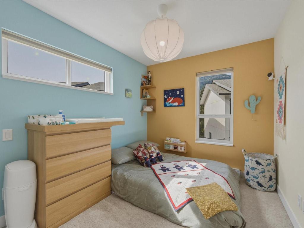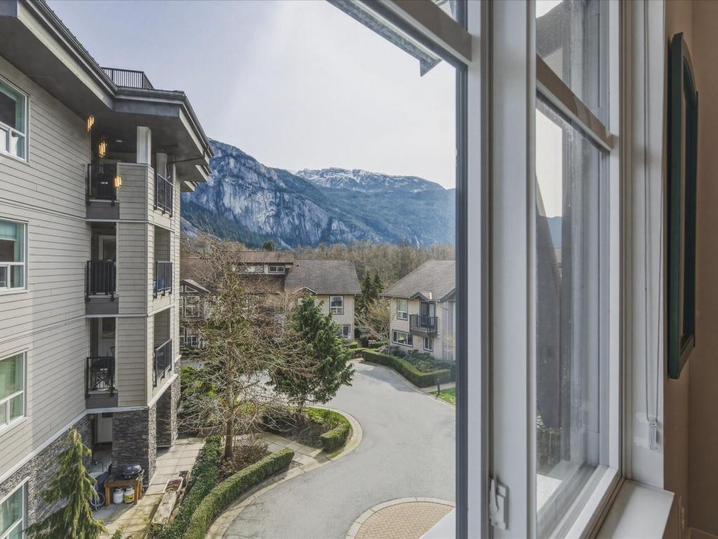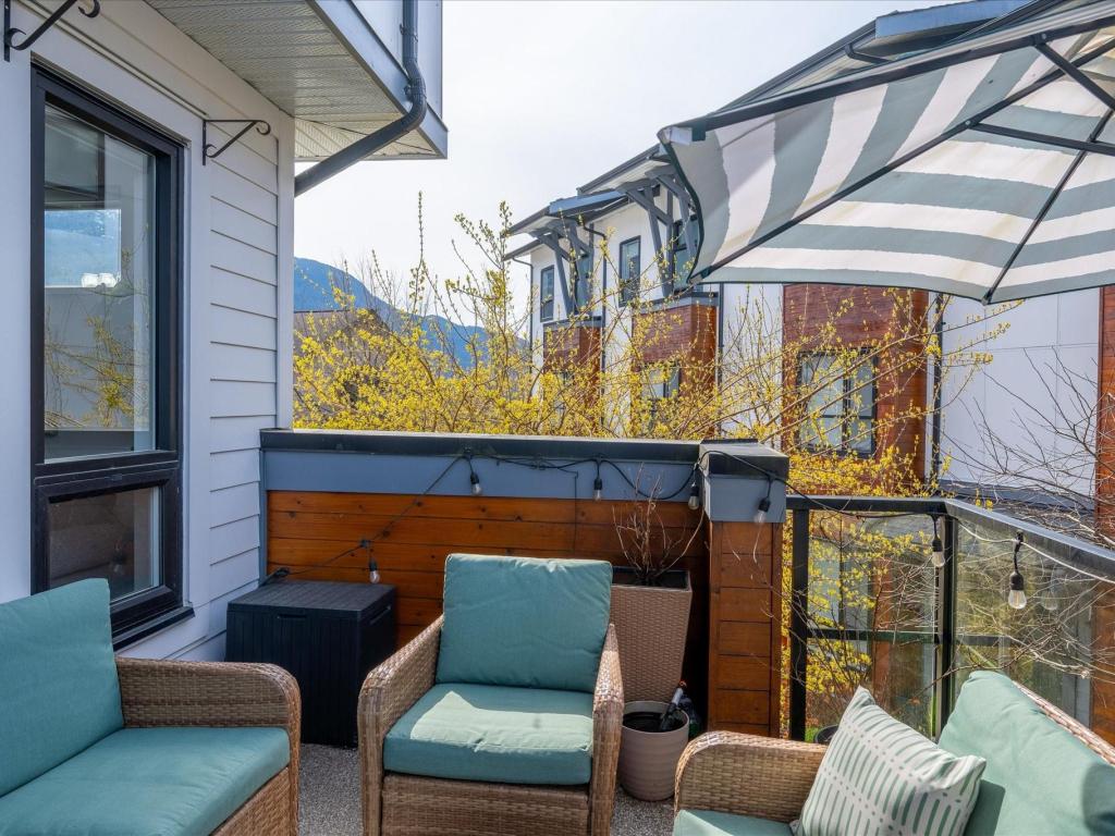 Beautiful bright end-unit at Soleil in a quiet location with green space outlook and views of the Chief from the deck and bedroom. Just steps to the estuary and trails, and only a few blocks to downtown amenities. Spacious sun-filled foyer leads to an open-concept main floor with 9’ ceilings, wide plank laminate flooring, and a southwest-facing sundeck. Functional layout flows from the living area to the kitchen with island, bar seating, stainless appliances, and into a generous dining space. Primary bedroom features a walk-in closet and ensuite. Includes two secured parking stalls and lots of storage. Enjoy easy access to nature right outside your door. Great condition and move-in ready!