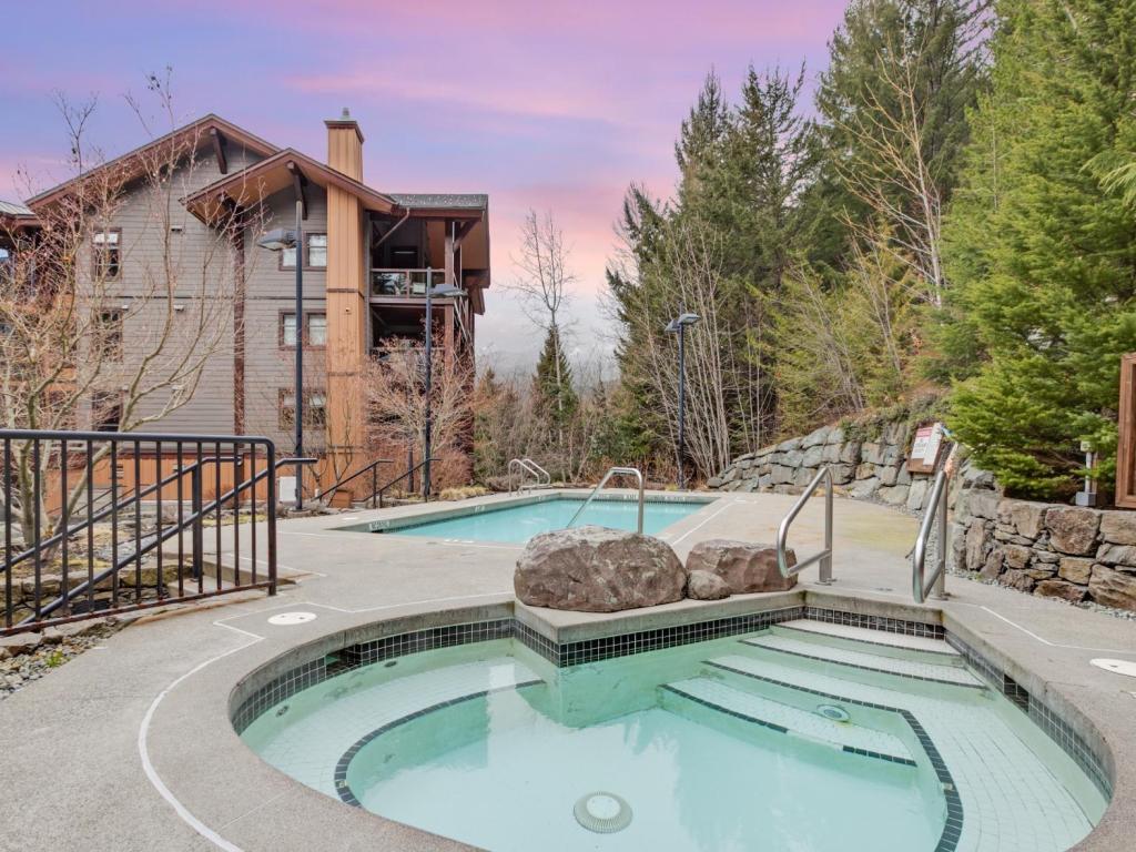 Escape to the ultimate Whistler retreat in this modern, pet-friendly 2-bedroom quarter-share condo, uniquely positioned as a coveted end unit facing the serene forest and rushing creek. This hassle-free ownership model grants you one week of use every four weeks, with the 2026 calendar featuring the highly sought-after Christmas through New Year's rotation. Tucked away on the quiet side of the building, you'll enjoy seamless access to a year-round heated pool, hot tub, gym, and private ski locker, all while being steps from world-class skiing and biking. With the HOA covering all expenses and professional rental management in place, you can focus entirely on the mountain lifestyle while the details are handled for you.