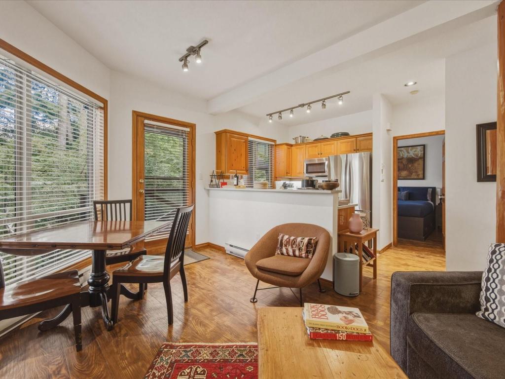 A rare opportunity to own a true ski-in/ski-out 1-bedroom townhome on the slopes of Blackcomb Mountain. These properties are exceptionally hard to find, and this one stands out with thoughtful updates and an ideal layout. The 681 sq ft interior features a renovated kitchen and bathroom, beautiful hardwood flooring, a cozy wood-burning fireplace, and in-suite laundry. A functional mudroom entry provides the perfect space for all your gear, while a large crawl space offers valuable additional storage. Enjoy a generous private deck with peaceful northwest exposure, showcasing mountain views across the valley and keeping the home cool during the summer months. Located in a sought-after complex with flexible Phase 1 zoning, this property allows for nightly rentals, full-time living, or a combination of both—making it an excellent lifestyle investment. Owners and guests benefit from premium amenities including gated underground parking, a hot tub, and convenient access to free public transit. Just moments from the Blackcomb Gondola, Fairmont Chateau Whistler, Lost Lake, world-class golf, and endless hiking and biking trails, this is the ultimate four-season Whistler retreat.